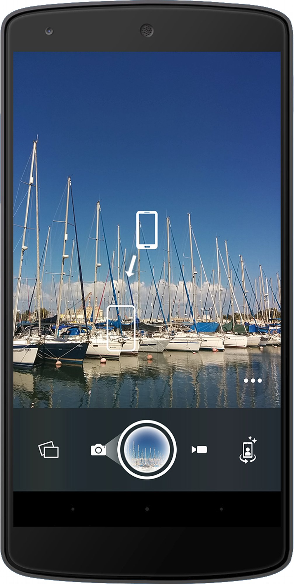 Dazu sucht Camera51 in der Szene nach Objekten, Gesichtern, Linien und anderen Formen und macht einen Vorschlag zur Bildkomposition, der auf traditionellen Gestaltungsregeln wie dem Goldenen Schnitt basiert. Der Nutzer muss dann nur noch das Smartphone-Symbol auf den Bildschirm mit dem Kompositionsindikator zur Überlappung bringen und den Auslöser drücken.