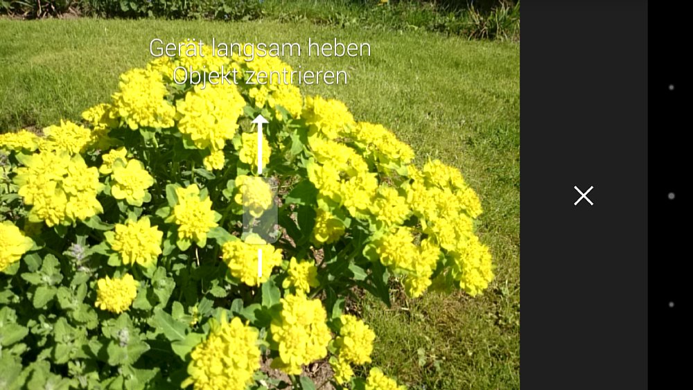 Zu den weiteren Funktionen der neuen Google-App zählt der Fokuseffekt, der auch unter der englischen Bezeichnung Lens Blur bekannt ist. Damit kann der Fokuspunkt verändert und künstliche Tiefenunschärfe geschaffen werden. Er kann aber nur genutzt werden, wenn die entsprechende Funktion vor der Aufnahme eingestellt wird. Um damit ein Foto aufzunehmen, muss das Handy langsam und möglichst gleichmäßig nach oben bewegt und dabei das Objekt immer in der Mitte gehalten werden. Ein Icon im Sucher zeigt die Bewegungsrichtung an und weist auch darauf hin, wenn du zu schnell warst. Dabei nimmt die Kamera nicht ein, sondern gleich mehrere Bilder auf und rechnet diese zu einem Bild zusammen. Aufgrund der daraus gewonnenen Tiefeninformationen errechnet Google Kamera das Bild mit Hintergrundinformationen. Die Intensität der dabei entstehenden Unschärfe kann nachträglich mit einem Schieberegler reguliert werden. Auf diese Weise kannst du Fotos machen, die ansonsten nur mit Offenblende und bei Smartphones kaum möglich sind. Es handelt sich aber beim Fokuseffekt mehr um eine interessante Spielerei als um eine fotografisch gute Funktion, denn die schon geringe Bildqualität eines Smartphones verschlechtert sich durch den Effekt weiter.