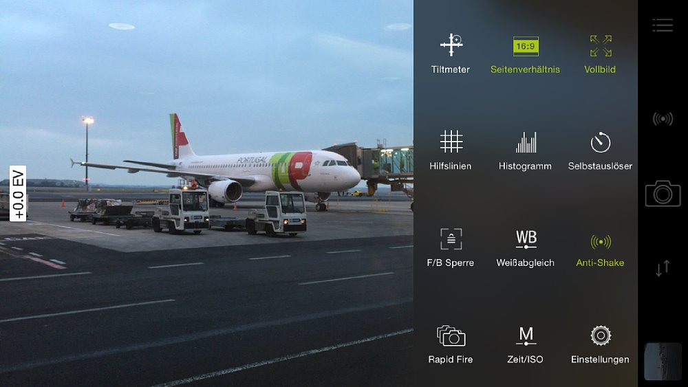 Die geschossenen Fotos kannst du anschließend in der App-eigenen Galerie wunschgemäß nachbearbeiten. Du kannst hier entweder eine automatische Optimierung anwenden, einen von vielen (wirklich vielen) Kunstfiltern über das Bild legen (einige müssen freigekauft werden) oder manuell Helligkeit, Kontraste, Belichtung, Sättigung, Farbtemperatur, Schärfe und HDR-Filter noch einmal nachregulieren. Gespeichert werden die Fotos anschließend wahlweise als JPEG oder verlustfrei TIFF (was die Standard-Kamera-App nicht kann). Für Videos gibt es derzeit leider keinerlei Nachbearbeitungsfunktionen. Mit 4,99 Euro plus 1,99 Euro für die HDR-Erweiterung und je 0,99 Euro pro zusätzlichen Filter stimmt aber das Preis-Leistungs-Verhältnis der an ambitionierte Anwender gerichteten App.