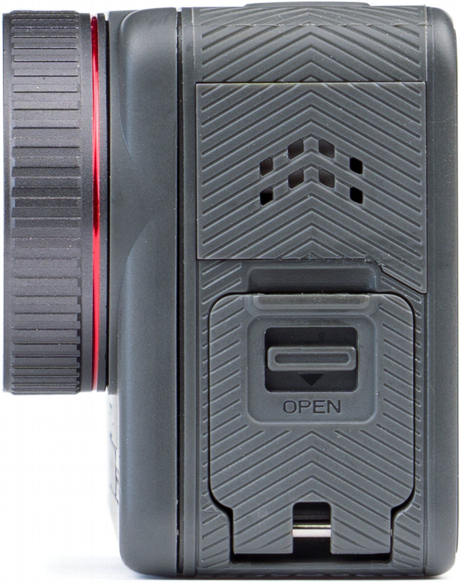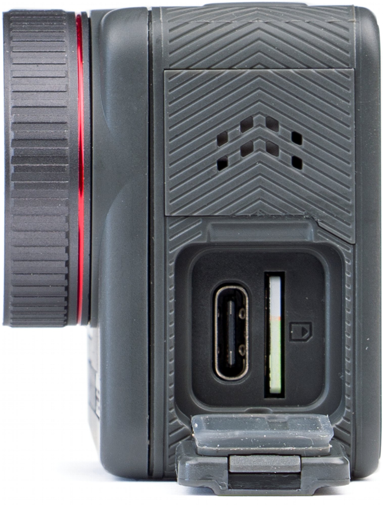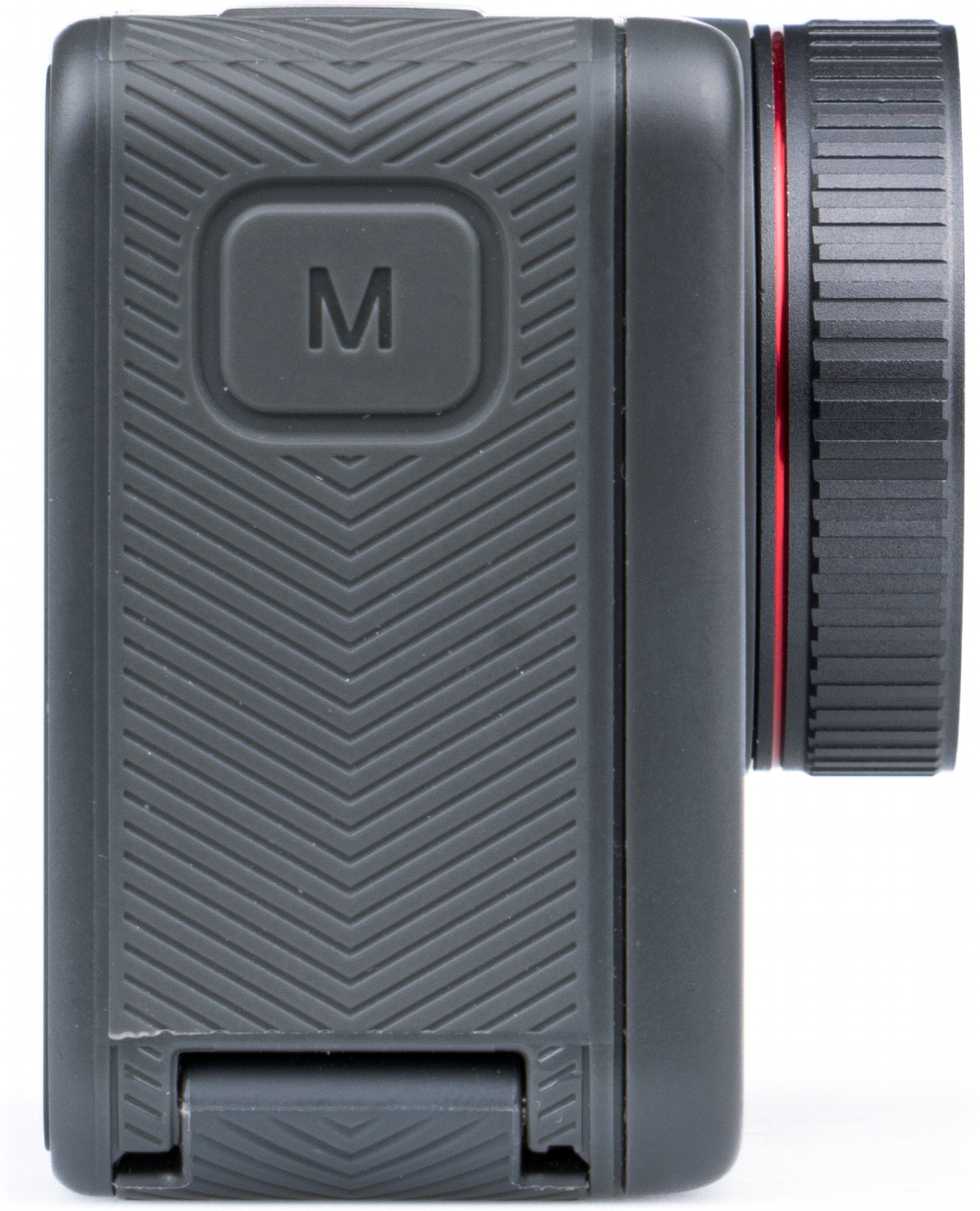 Nun zur Kamera selbst. Die Akaso Brave 8 zeigt äußerlich starke Design-Anleihen an die mittlerweile nicht mehr lieferbare DJI Osmo Action (die 2019 vorgestellte erste Actioncam vom Drohnen-Pionier DJI). Das beginnt bei der Gehäusefarbe (Grau) und hört bei den Vertikallamellen an der Front nicht auf. DJI ist über solche Design-Spielereien längst hinweg und praktisch sind die Design-Lamellen nicht. In ihnen kann sich Schmutz gut festsetzen und auch Wassertropfen halten sich dort recht stabil und blockieren mitunter für längere Zeit die in den Tiefen der Lamellen untergebrachten Mikrofone (siehe weiter unten beim Ton). Insgesamt erreicht das Gehäuse nicht die "Anfühl-Qualität" der Kameras der bekannten Marken, ist aber wiederum ausreichend stabil.