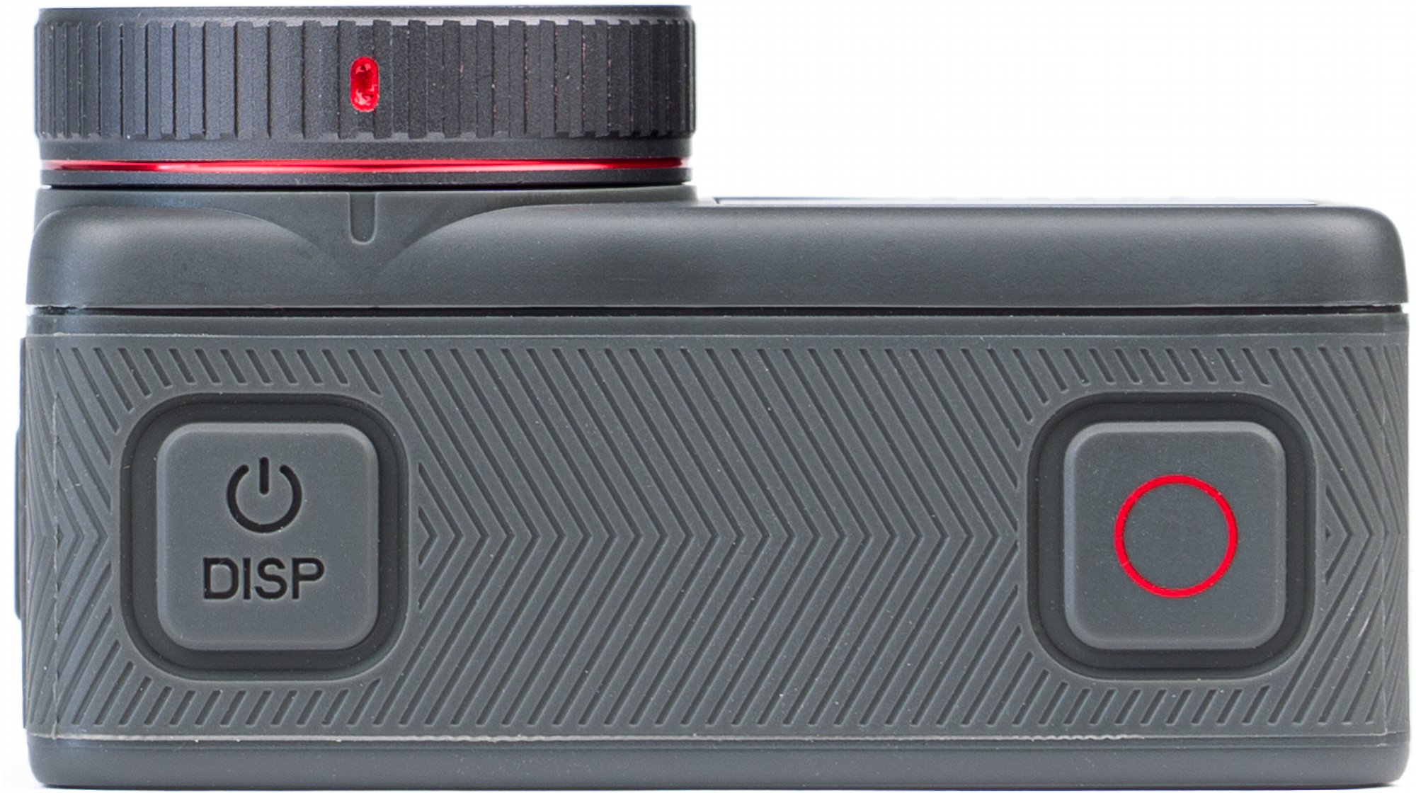 Kleinere Unstimmigkeiten eröffnen sich dann beim Einschalten. Die Kamera hat drei Tasten. Eine ist ganz offensichtlich die Aufnahmetaste (an der üblichen Stelle mit rotem Ring-Aufdruck). Eine zweite oben auf der Kamera ist mit dem Ein/Aus-Symbol beschriftet sowie mit "Disp". Seitlich gibt es noch eine mit M beschriftete Taste. Nach dem Einschalten läuft nur einer der beiden Monitore. Wer nun vermutet, mit der "Disp"-Taste zwischen den beiden Displays hin- und herschalten zu können oder sogar beide gleichzeitig aktivieren zu können, liegt völlig falsch. "Disp" steht durchaus für "Display", schaltet das (standardmäßig hintere) Display aber lediglich an und aus. Eigentlich eine völlig unnötige Funktion, denn das könnte eine Energiesparautomatik ja auch nach einer eingestellten Zeit automatisch tun und tut es ja sogar auch. Wer nun das vordere Display zum Leben erwecken will, kommt erstmal nicht weiter. Wir verraten es hier aber: Die seitliche M-Taste lange gedrückt halten schalten zwischen beiden Displays um. Dass beide gleichzeitig ein Bild zeigen ist nicht vorgesehen, man muss sich entscheiden. Das sind die kleinen Details, wo Marktführer GoPro einfach die Nase vorn hat (dort sind beide Displays gleichzeitig eingeschaltet und niemand muss sich dafür auf die Suche machen, wie das geht).