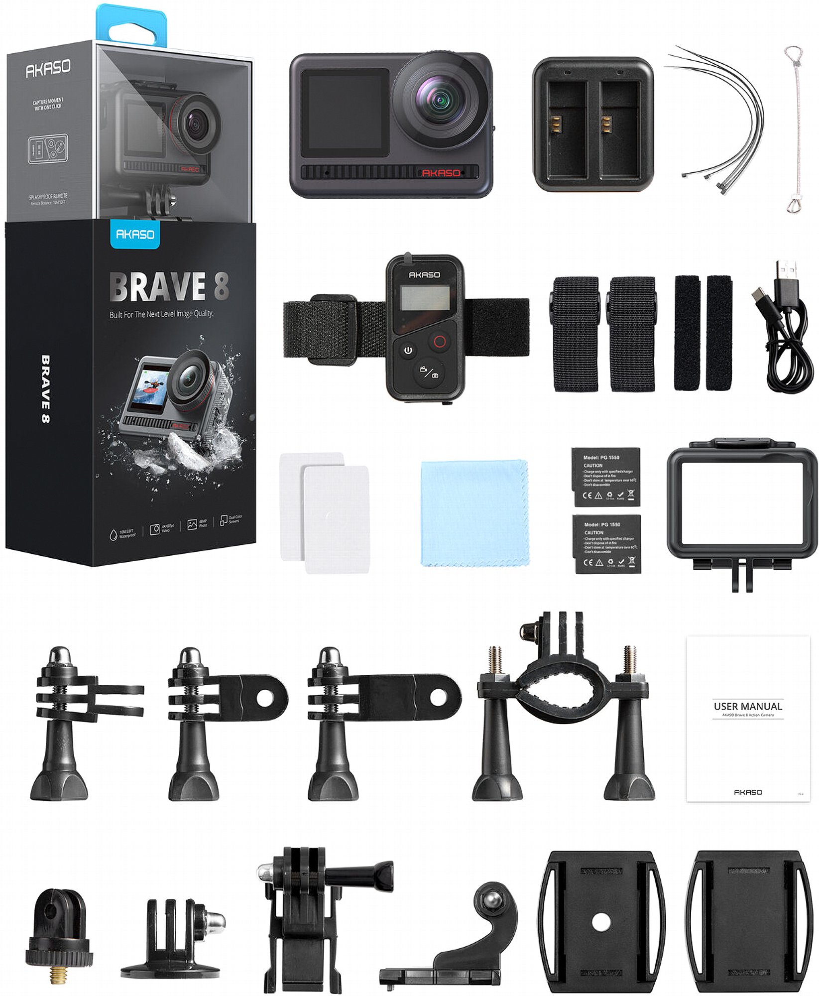 Nun zur Kamera selbst und warum wir sie testen: Der Preis der Akaso Brave 8 liegt zum Zeitpunkt dieses Tests bei knapp 280 Euro (im Proshop teurer), das ist für die technischen Eckwerte günstig, mit denen die Brave 8 als echte Flaggschiff-Kamera auftritt: Front- und rückseitige Bildschirme, einen 1/2-Zoll-48-Megapixel-Sensor (der seine Qualitäten schon in Drohnen und der Actioncam Insta360 RS unter Beweis stellen konnte), interne Bildstabilisierung, Voice Control, 8K Timelapse und 16-fach-Zeitlupe. Das ist mal eine Ansage. Hinzu kommt ein enorm großer, durchaus wertvoller Lieferumfang inklusive Funkfernbedienung, zweitem Akku, Dual-Batterieladeschale und zahlreichen Halterungen, die woanders nochmal mit weit über 100 Euro zu Buche schlagen. Sicherlich ist Akaso den "B-Brands" zuzuordnen, also den unbekannten Marken. Mit solchen Actioncams haben wir insgesamt eher keine guten Erfahrungen gemacht. Zumindest von den technischen Eckwerten verspricht Akaso hier definitiv A-Marken-Leistung zu einem sehr attraktiven Preis. Bei A-Marken wie GoPro, Insta360 oder DJI zahlt man für adäquate Kameras deutlich mehr, erst recht, wenn man dann auch nur einen Teil des hier mitgelieferten Zubehörs hinzukauft. Ein Grund also, der versprochenen Leistung auf den Zahn zu fühlen.