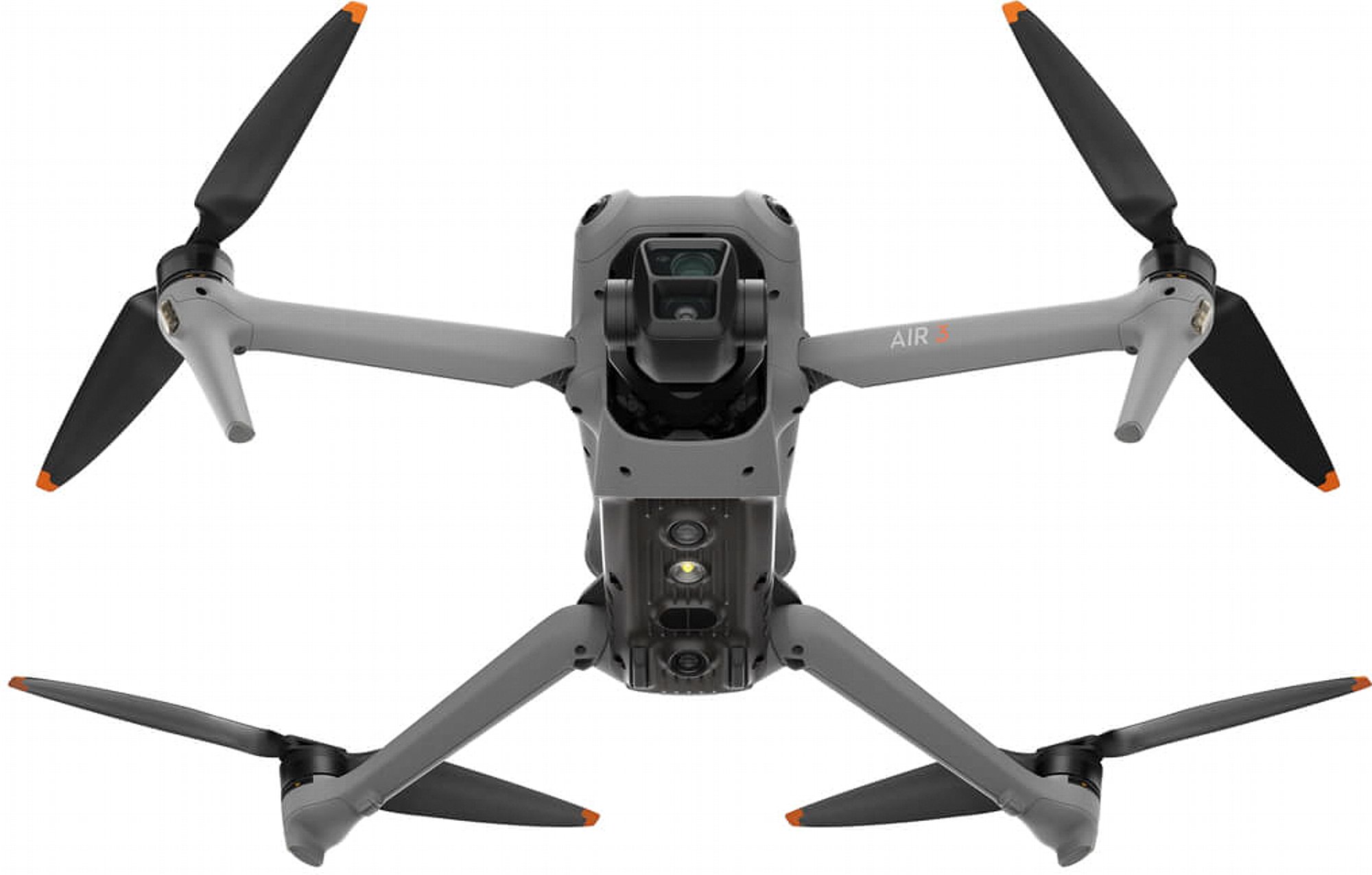 Dann hat die Drohne Kollisionsverhütungssensoren rundum, auch seitlich. Dabei hat die DJI Air 3 effektiv sogar weniger Sensoren als das Vorgängermodell. Die Air-2-Baureihe hatte noch allein vier Sensoren, die nach vorne oben und vorne unten ausgerichtet waren. Die DJI Air 3 benötigt für dieselbe Arbeit nur zwei Sensoren und diese blicken sogar schräg zur Seite und decken den gesamten vorderen und seitlichen Bereich, auch oben und unten, ab. Das Gleiche nochmal hinten und schon ist eine omnidirektionale Hinderniserkennung gegeben. Der "Trick" dabei liegt in den neuen Fisheye-Linsen, die ein enorm großes Bildfeld abdecken. In Verbindung mit hoher Auflösung und entsprechend leistungsfähiger Datenverarbeitung ergibt das eine Rundum-Hinderniserkennung, die es so in dieser Klasse bislang noch nicht gab. Das gleiche Verfahren setzt DJI übrigens auch in der neuen Ultraleicht-Drohne Mini 4 Pro ein, die dadurch die erste Mini-Drohne mit Rundum-Hinderniserkennung ist.