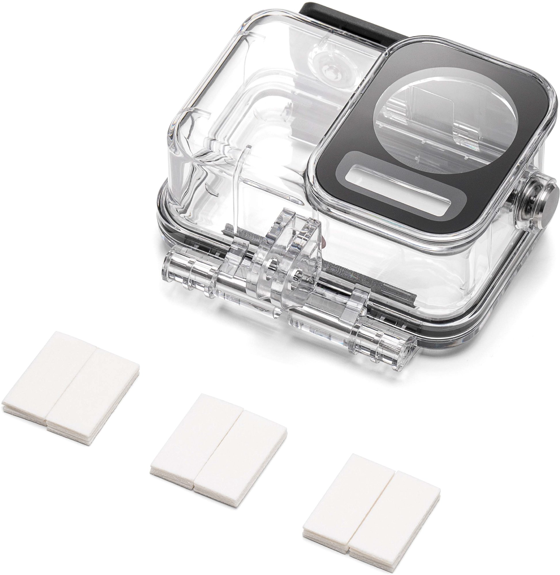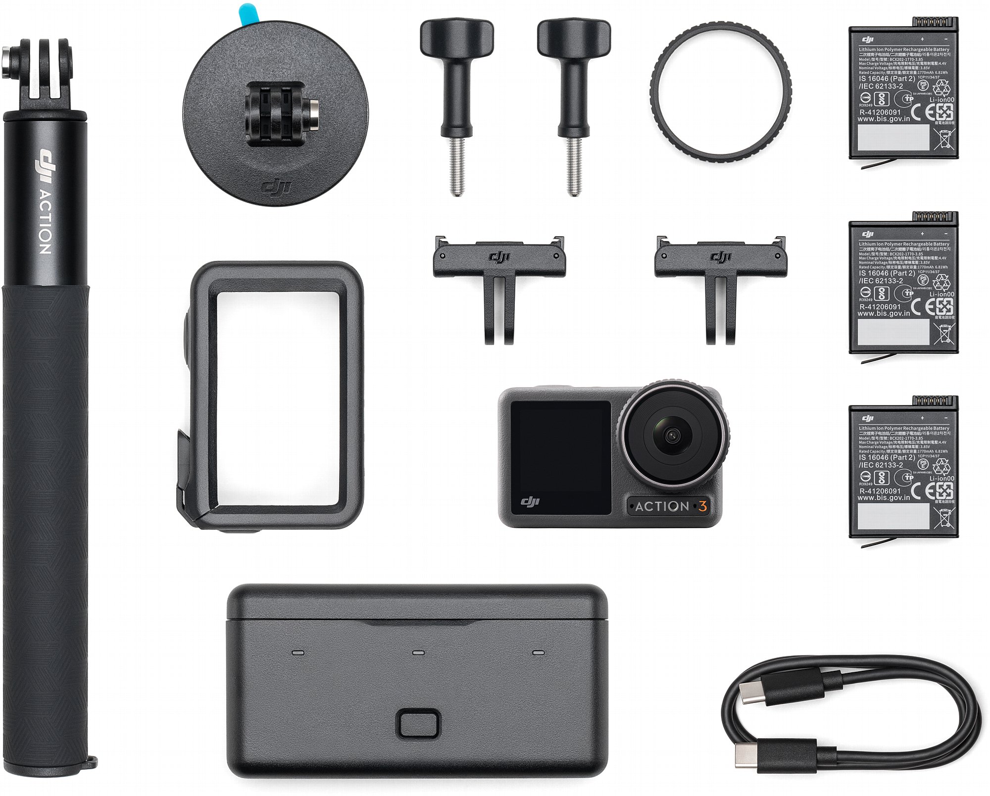 Für 100 Euro mehr (also 459 Euro) gibt es die "Adventure Combo". Darin sind gegenüber dem Standard-Kit zusätzlich enthalten: eine weitere Schnellverschluss-Halterung, zwei weitere Akkus und ein praktisches, multifunktionales Batteriegehäuse (Battery Case). Letzteres dient einerseits zum Aufladen aller drei Akkus. Zusammen mit diesen funktioniert es aber auch als Powerbank und kann externe Geräte laden. Die integrierte Ladeelektronik arbeitet sehr clever: Zuerst wird der Akku aufgeladen, der noch die meiste Restkapazität enthält. So ist diese am schnellsten wieder einsatzbereit und das filmen kann weitergehen. Bei der Nutzung als Powerbank funktioniert das genau umgekehrt. Zuerst werden die Akkus entladen, die sowieso am wenigsten Restladung haben. So bleibt der beste Akku bis zuletzt voll fürs Filmen mit der Actioncam. Zum Aufladen sollte man ein USB-C-Netzgerät mit PD (Power Delivery) oder PPD (Programmable Power Delivery) verwenden. Bei mindestens 30 Watt Leistung sind alle drei Akkus innerhalb von 2 Stunden voll.