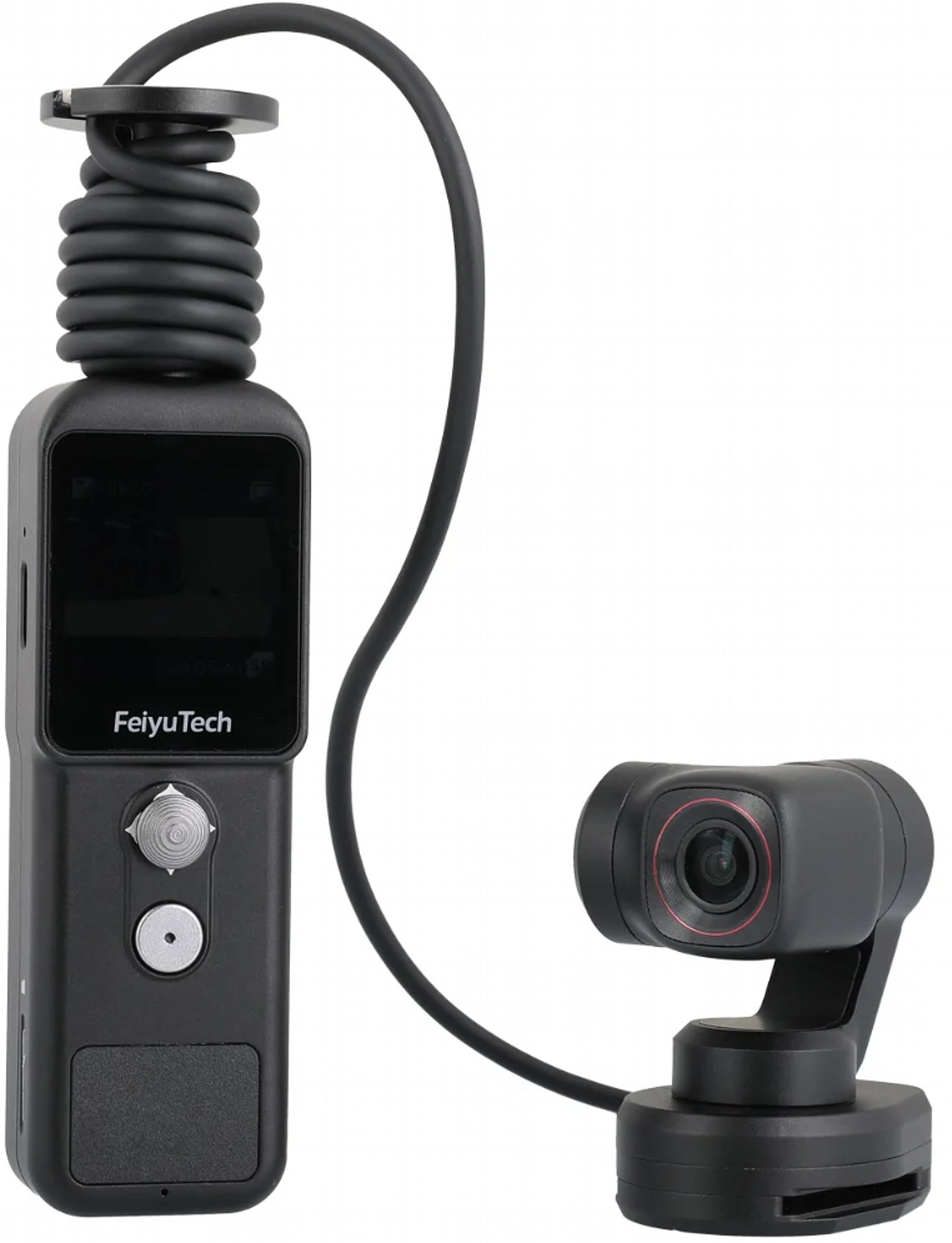 Kurz zur Einordnung und warum wir uns die Feiyu Pocket 2S überhaupt als Testgerät besorgt hatten (man hat ja auch genug andere Sachen zu tun): Gimbal-Kameras gibt es ja einige und wir hatten auch schon das eine oder andere Gerät im Test. Genau dieses Feiyu Pocket 2S hat aber ein interessantes Alleinstellungsmerkmal. Der Kamerakopf inklusive Gimbal lässt sich vom Bedienteil abkoppeln und – verbunden mit einem 90 Zentimeter langem Kabel – alleine irgendwo montieren. Das hört sich interessant an. Das musste ausprobiert werden. Unter der Bezeichnung Feiyu Pocket 2 gibt es das Gerät auch als "normale Version". Bei dem ist der Kamerakopf, wie sonst bei den kleinen Gimbal-Kameras, fest am Handgriff montiert. Ansonsten sind beide Geräte technisch absolut identisch, sodass dieser Test in allen anderen Fragen gleichermaßen für Feiyu Pocket 2 und Feiyu Pocket 2S gilt.