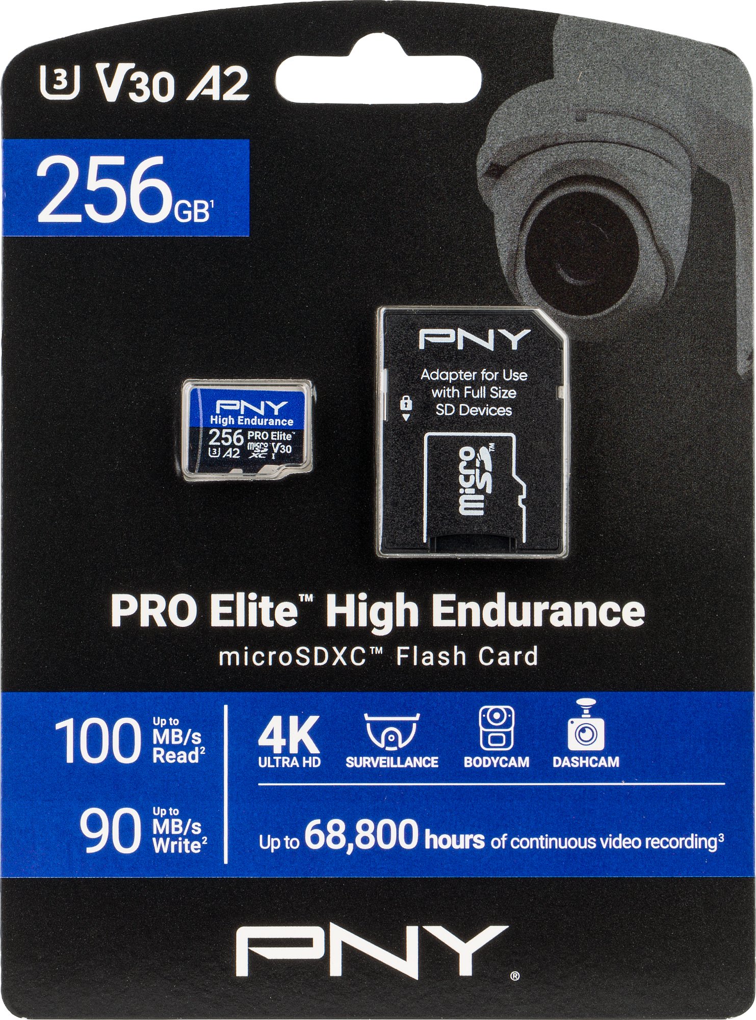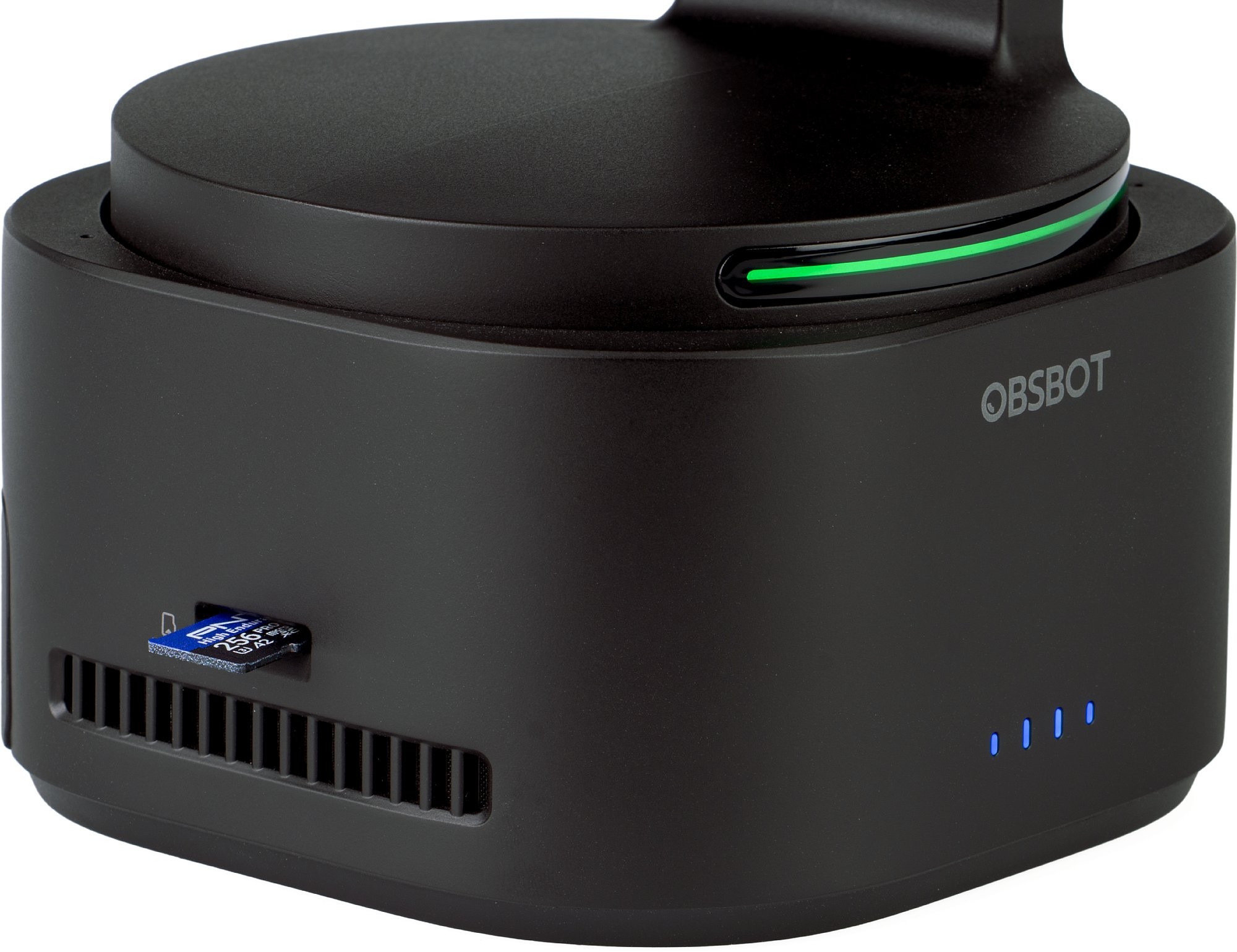 Die Obsbot Tail 2 besitzt einen Steckplatz für eine Micro-SD-Speicherkarte (nicht im Lieferumfang enthalten). Obsbot empfiehlt die Verwendung einer Karte der Klasse U3, die exFAT- und FAT32-formatiert sein muss. Die maximale Speicherkapazität ist mit 1 TB getestet. Für den Test haben wir eine PNY High Endurance Pro Elite in der Größe 256 GB verwendet – sozusagen das zweite Testgerät in diesem Test. Die Speicherkarte ist speziell für Dauerbetrieb und Sicherheitsanwendungen bei Videoaufzeichnungen ausgelegt, fühlt sich aber natürlich auch in einer Live-Produktionskamera wie der Tail 2 pudelwohl. Die Karte ist mit der UHS-Speed-Class 3 (U3) bzw. V30 gekennzeichnet, garantiert also 30 MB/s. Sie übertrifft diese Mindestanforderung sogar um das Dreifache, allerdings mit der Einschränkung „bis zu“. Bis zu 90 MB/s Daten lassen sich konstant auf die Karte schreiben. Zum Zeitpunkt dieses Tests kostet die Karte in dieser Größe rund 40 bis 50 Euro.
