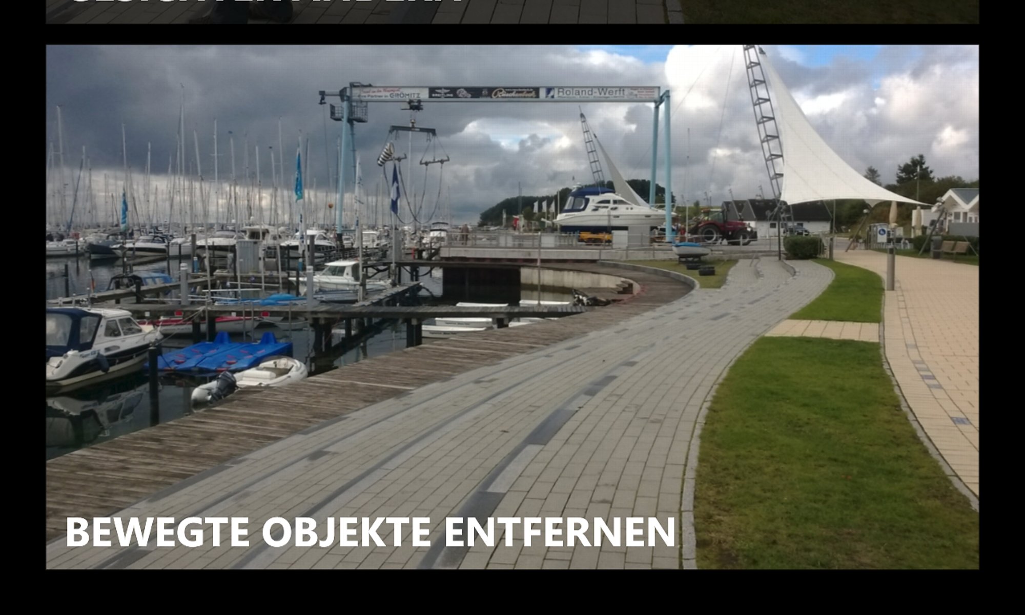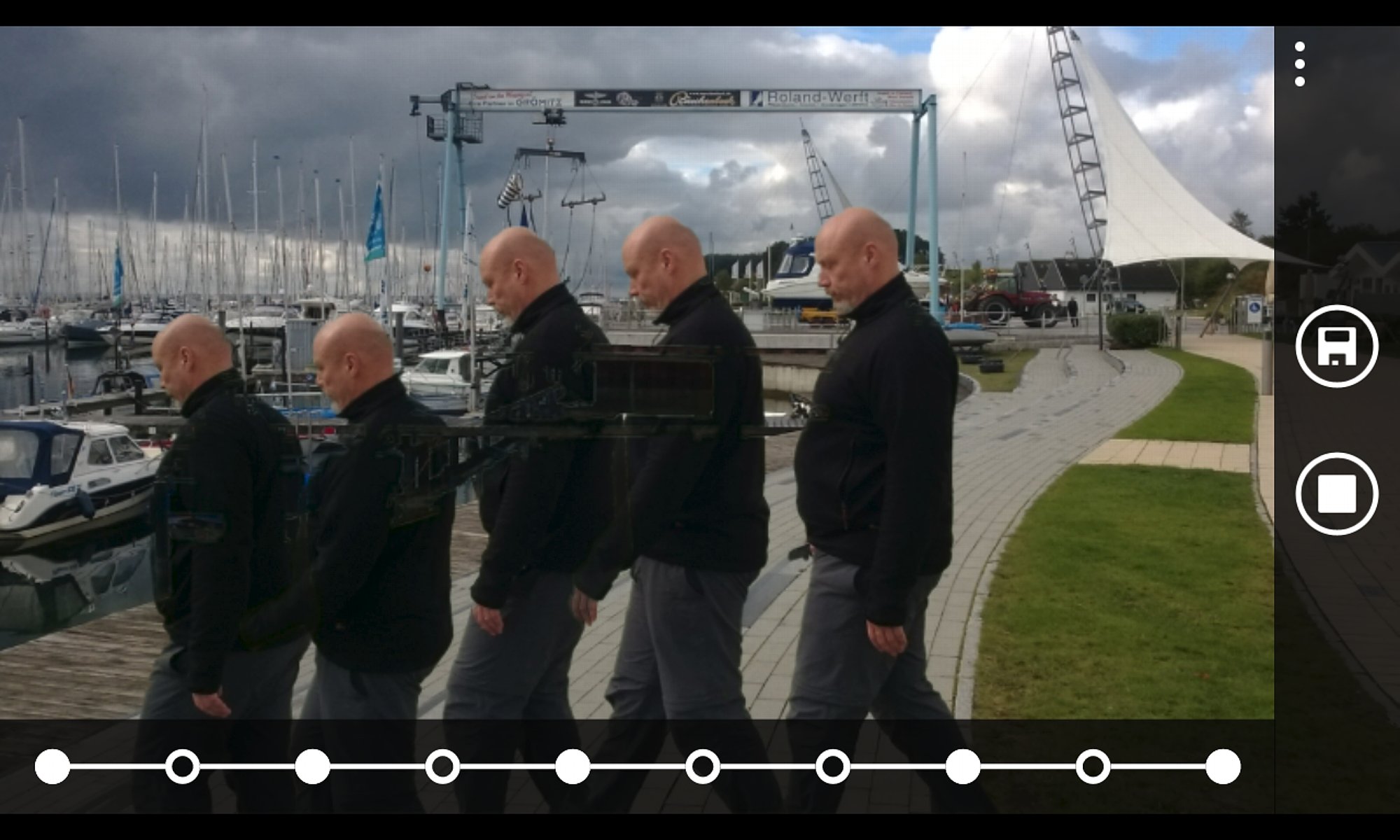 Werfen wir noch einen Blick auf die anderen mitgelieferten Foto Apps von Nokia. Nokia SmartCam ist eine herrliche Spielerei, die wirklich Spaß macht. Allerdings nur sofern man Bewegung im Motiv hat, die Kamera aber ruhig hält. Smart Cam schießt dann eine Serienbildsequenz mit 10 Fotos. Anschließend kann man die Sequenz interaktiv in verschiedenen Modi bearbeiten, beispielsweise ein bewegtes Objekt wie in einer Mehrfachbelichtung darstellen (siehe Bildbeispiele) oder scharf vor einem verwischten Hintergrund. Das funktioniert erstaunlich gut und liefert verblüffende Ergebnisse, die man so nur mit einer Menge Handarbeit in einem Bildbearbeitungsprogramm hinbekommt. Ebenfalls von eindrucksvoller Qualität: Der auf 180 Grad Erfassungswinkel beschränkte Panorama-Assistent. Er hilft einem, die Einzelaufnahmen für ein Panoramabild exakt auszurichten und greift dabei auf die Informationen von Kompass und Neigungssensor im Smartphone zurück. Sobald der jeweils passende Bildausschnitt korrekt erfasst ist, löst der Panorama-Assistent automatisch aus. Das Ergebnis ist anschließend ein perfekt zusammenmontiertes 20-Megapixel-Panoramafoto (ein Beispiel gibt es in der Bildgalerie von digitalkamera.de zu sehen). Die Panorama-Automatik funktioniert übrigens auch senkrecht: Wenn einmal der Kirchturm oder das Bergmassiv nicht aufs Bild passen, baut sie zwei Fotos im Hochformat untereinander zusammen.