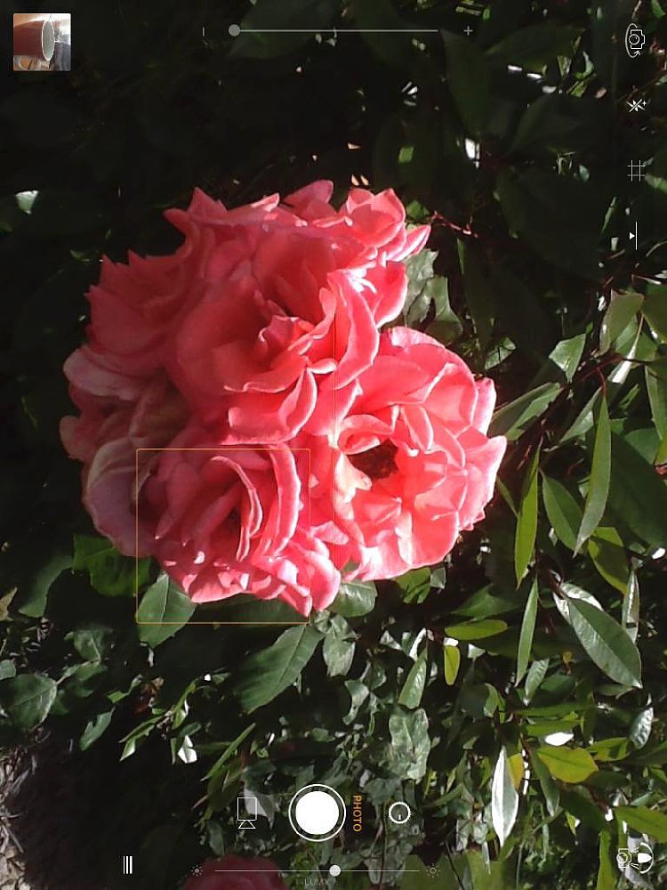 So verfügt Camera Plus zum Beispiel über die Möglichkeit zur Belichtungskorrektur. Wie in Apples Kamera-App ist bei Camera Plus die Belichtung an den Fokuspunkt gekoppelt aber zusätzlich gibt es am rechten Bildrand einen Schieber, mit dem auf einfache Art und Weise die Belichtung modifiziert werden kann. Das Ergebnis ist natürlich in der Bildvorschau sichtbar und kann so perfekt auf die Bedürfnisse der Bildsituation abgestimmt werden.