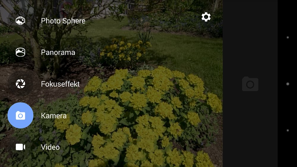 Leider kommen die normalen Kamera-Funktionen in der Google App deutlich zu kurz. Einblendbare Gitterlinien sind nur 1 Pixel breit. Damit stören sie nicht, sind aber bei Sonnenlicht auch praktisch nicht zu sehen. Ganz daneben gegangen ist die Belichtungskorrektur: Die Aufnahme lässt sich nur in Stufen von einem Blendenwert (+2, +1, 0, -1, -2) korrigieren. Das ist viel zu Grob! Üblich ist eine Korrektur in 1/2 Blendenstufen oder 1/3 Blendenstufen und das braucht man auch. Bei unserem Testgerät, einem Sony Xperia Z1 bot die Google Kamera App bei normalen Fotos die volle Auflösung von 20 Megapixel an, dazu noch 8 und 3 Megapixel. Alle aber iom 4:3-Format und keine 16:9-Formate. Die separate zweistufige Auslösetaste, die dieses Smartphone hat, wurde nur unzureichend unterstützt. Im normalen Kameramodus vermissten wir eigentlich nur den optischen und/oder akustischen Feedback zur erfolgten Scharfstellung. Im Video-Modus verhillt sich die Taste etwas eigenwillig: Die Aufnahme lief nur solange der Auslöser gedrückt gehalten wurde (was durchaus zweckmäßig sein kann). In den Spezial-Modi (Panorame etc.) flog man mit einem Druck auf die Hardware-Taste aber aus der App und landete in der Sony-App.