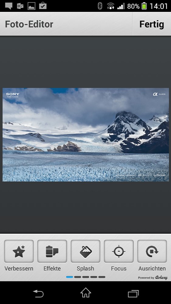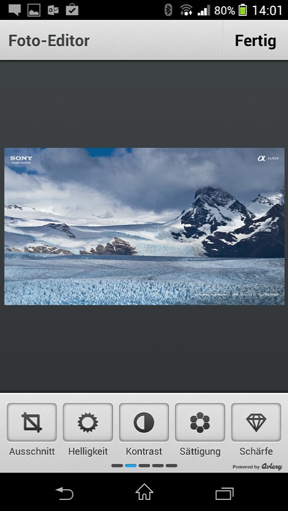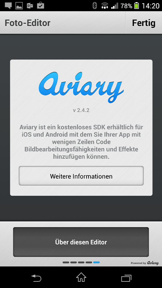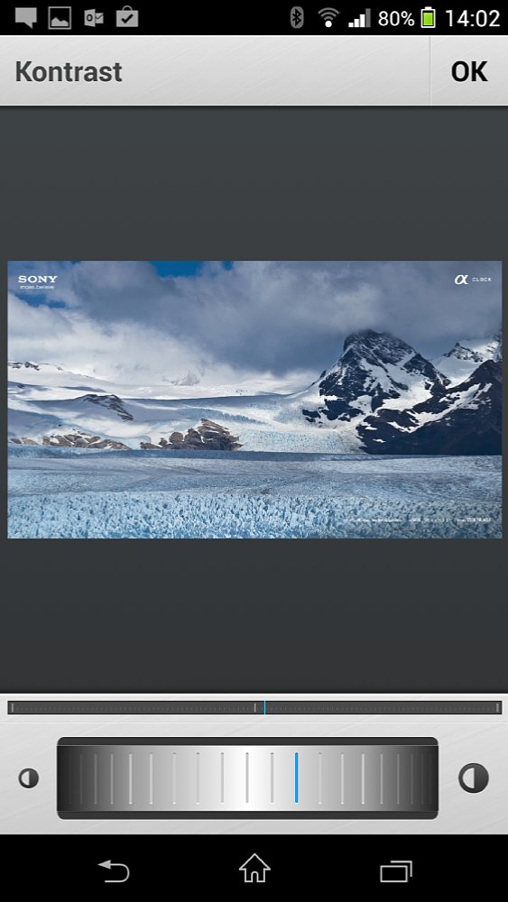 Aufgrund der Ähnlichkeit zum Aviary Photo Editor bietet der Photo Editor+ von Axiem Systems auch noch die gleichen Vor- und Nachteile. So haben die Schieberegler der entsprechenden Werkzeuge auch hier das haptische Feedback wie wir es schon bei Aviary gesehen haben. Und auch hier gibt es auf dem Smartphone kein Querformat. Lediglich auf einem Tablet kannst du die Ansicht drehen, nachdem du ein Bild zum Bearbeiten ausgewählt hast.