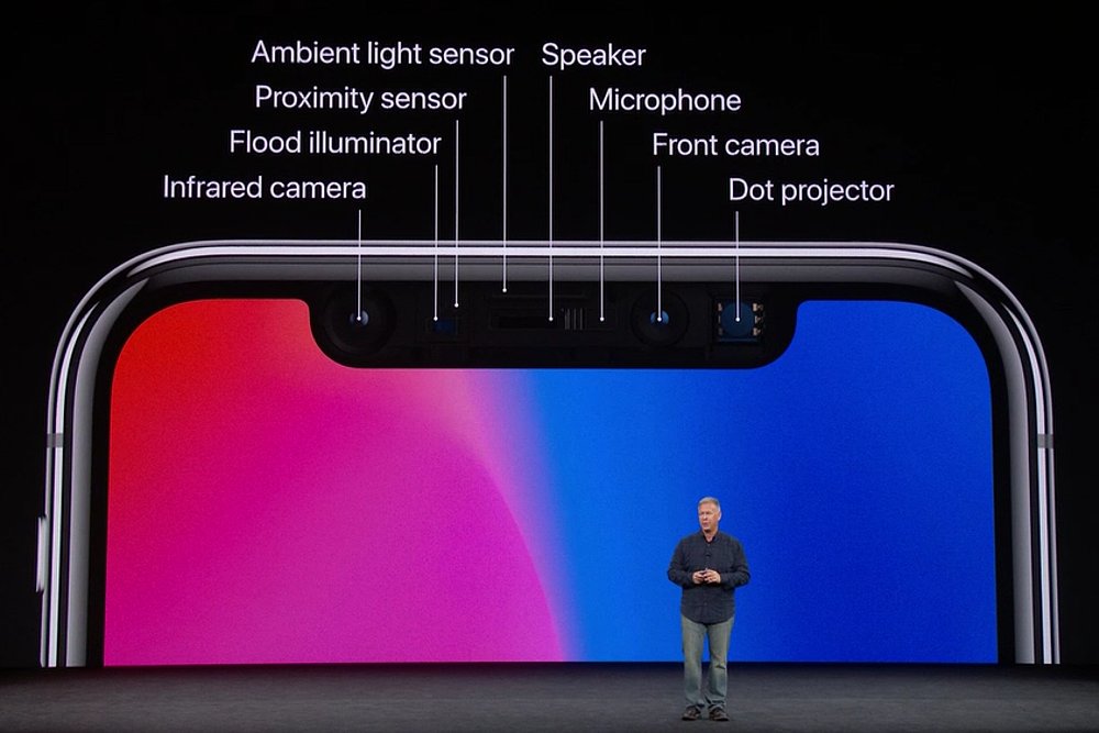 So richtig toll ist das iPhone X auf der anderen Seite, auf der Display-Seite. Dort befindet sich ein rundum bis in die Ecken des Geräts reichendes OLED-Display. Laut Apple das erste OLED-Typ-Display, das dem Hersteller gut genug war. Es schließt zwar nicht nahtlos an die Gehäusekante an oder ist gar ein Edge-Display, das um Ecke herum geht. Stattdessen gibt es einen schmalen schwarzen Rand. Aber es ist nicht eckig, sondern hat abgerundete Ecken und oben ist der Bereich mit den Front-Kameras und dem Hörer-Lautsprecher quasi aus dem Display ausgeschnitten (und bleibt ebenfalls schwarz). Der Bereich links und rechts davon wird für die üblichen Status-Anzeigen genutzt. Schaut man Videos oder Fotos an (und zoomt man in die Fotos rein), dann haben diese halt runde Ecken und den Ausschnitt für die Kameras. Das ist sicherlich erstmal ungewohnt, aber im Grunde nicht weiter schlimm. Unterstützen die Apps das neue Format (und das Betriebssystem iOS 11 unterstützt das natürlich sowieso), dann lässt sich die neue erweiterte Fläche gut nutzen und schafft zusätzlichen Platz. Die Diagonale beträgt übrigens 5,8 Zoll (14,7 cm bis in die Rundungen der Ecken gemessen, "eckig" gemessen wären es 5,85 Zoll). Durch die volle Ausnutzung der Front bleibt so das Gehäuse schön schmal bei maximaler Displayfläche: Größe und Gewicht des iPhone X liegen zwischen denen von iPhone 8 und dem iPhone 8 Plus – weshalb es auch kein iPhone X Plus gibt. Das ist schlicht nicht nötig. Die Auflösung des Displays beträgt 2436 x 1125 Pixel, das sind 458 ppi, das ist noch deutlich schärfer als jedes andere Apple Display bisher. Apple nennt das "Super Retina HD Display". Das Kontrastverhältnis des OLED-Displays soll bei 1 Mio. zu 1 liegen. Natürlich hat es auch den von Apple neuerdings favorisierten großen Farbraum (P3). Die maximale Helligkeit des aktiv leuchtenden Displays beträgt wie bei den sonst verbauten LC-Displays 625 cd/m². Das Display unterstützt Dolby Vision und HDR10 (Techniken, die man normalerweise bei Fernsehgeräten findet). Da nun das Display über die ganze Front geht, ist kein Platz mehr für den Home-Button, der das Design des Apple iPhones seit über 10 Jahren maßgeblich prägt. Seit einigen Generationen ist dort auch der Fingerabdruck-Sensor eingezogen, der seinerseits Maßstäbe in der Bedienung gesetzt hat. Braucht man alles nicht mehr, sagt Apple. Mittlerweile ist die Technik weiter. Das iPhone X bietet als Ersatz eine "Face ID" genannte Technik, also im Grunde eine extrem fortschrittliche Gesichts-Wiedererkennung. Dazu gibt es nicht nur eine, sondern zwei Front-Kameras mit 7 Megapixeln Auflösung. Eine davon arbeitet als Infrarot-Kamera. Das Gesicht des Besitzers wird einmal eingelernt, etwa so wie bisher der Fingerabdruck. Die Sache soll noch ein Vielfaches sicherer sein als der bisherige Fingerabdruck-Scan. Die Wahrscheinlichkeit einer unberechtigten Freischaltung des Smartphones soll bei 1 Million zu 1 liegen. Wie gut die Technik in der Praxis funktioniert, wird man sehen. Apple sagt, sie funktioniert. Auch wenn sich dein Aussehen, z. B. durch einen wachsenden Bart, verändert. Die Technik lernt laufend mit und registriert kontinuierlich Veränderungen. Auch eine Brille oder eine Mütze sollen kein Problem sein. Und notfalls kannst du immer noch deine 6-stellige Sicherheits-PIN nutzen. Die ganze Gesichtserkennungs-Technik läuft übrigens komplett lokal auf dem Smartphone. Keine Daten oder Fotos werden dazu an irgendeinen externen Server gesendet.