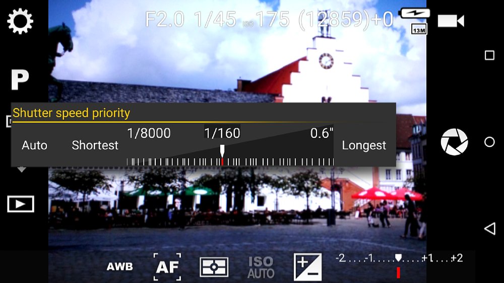 Ein weiteres neues Feature ist die Einstellung manueller Verschlusszeiten von 1/8000 bis zu zwei Sekunden. Die genaue Bandbreite hängt allerdings vom verwendeten Android-Modell ab. Auch werden die Verschlusszeiten auf einer neu gestalteten Skala eingestellt, die den bisherigen Speed-Priority Dialog im Menü ersetzt.