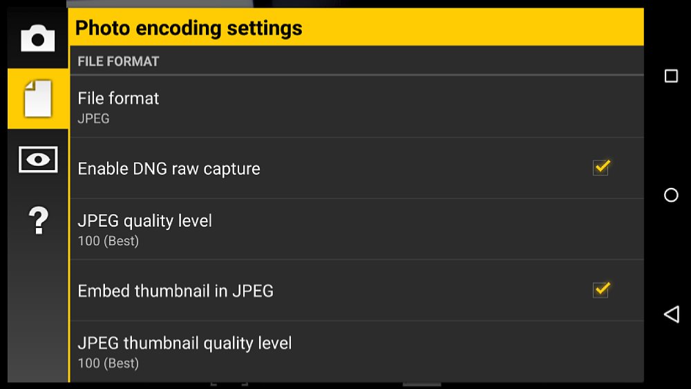 Die Raw-Funktion kann in den Einstellungen aktiviert werden, ist allerdings nur unter Android 5.0 und mit Google-konformer Camera2-Implementierung verfügbar. Bisher erfüllen nur Googles eigene Nexus 5 und 6 Geräte diese Voraussetzungen, es ist aber anzunehmen, dass die Liste kompatibler Smartphones mit der Verbreitung von Android 5.0 schnell ausgeweitet wird. Wir haben die Raw-Funktion auf einem Nexus 6 ausprobiert und konnten die DNG-Dateien problemlos mit Adobe Camera Raw öffnen. Mangels Kamera-Profil sind die Bilder beim Öffnen zu dunkel, aber es bleibt zu hoffen, dass die Hersteller von Raw-Konvertern in der Zukunft zumindest für die am weitesten verbreiteten Android Modelle Profile anbieten werden.