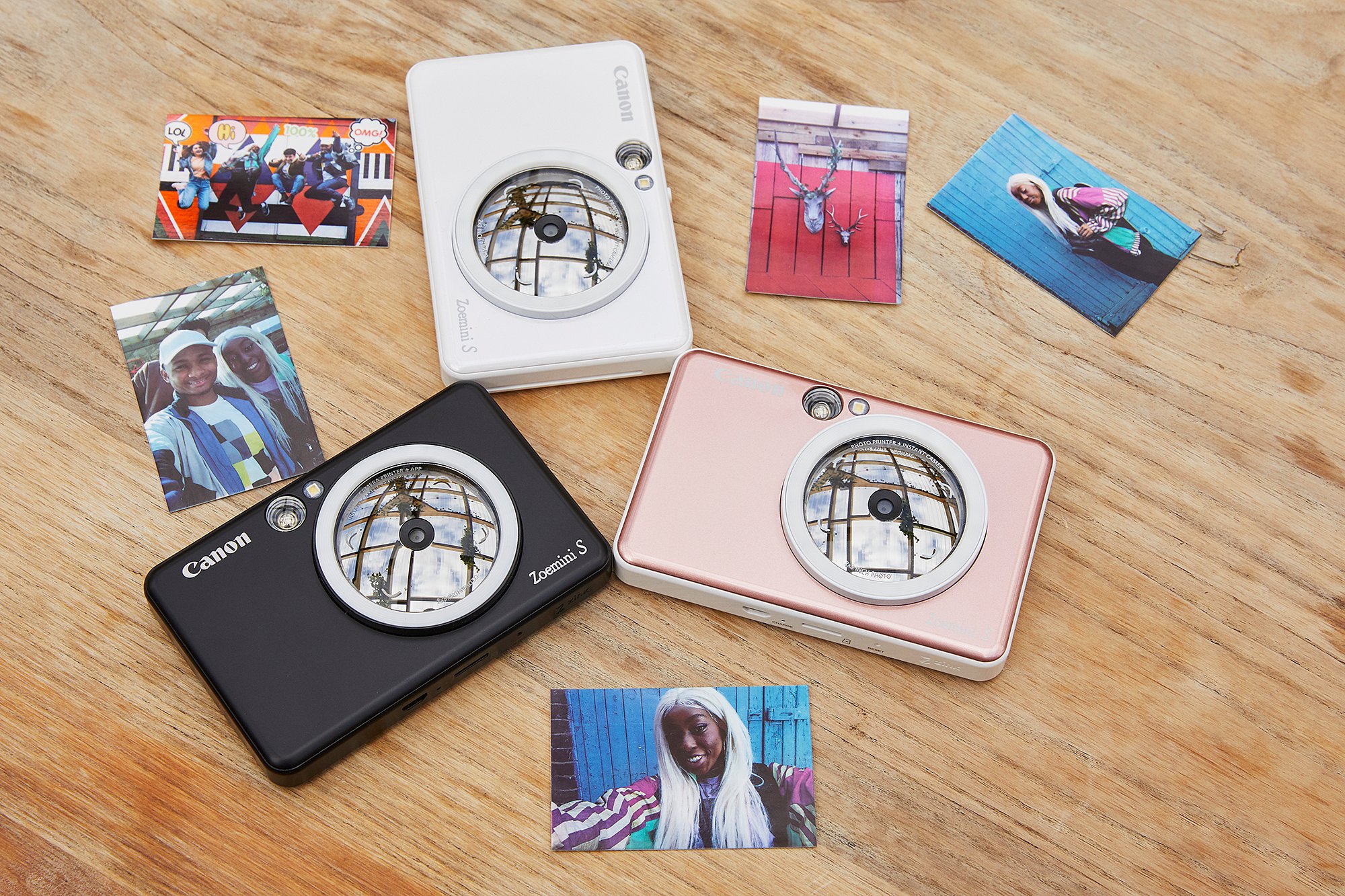 Canon präsentiert die ersten zwei 2-in-1 Sofortbild-Kameras, die eine digitale Kamera mit einem zink Mini-Fotodrucker im praktischen Taschenformat kombinieren: Canon Zoemini S und Zoemini C. Die neuen Modelle knüpfen an den erfolgreichen Canon Zoemini an. Beide Modelle sind ideal für spontane Fotos oder Selfies auf Parties oder unterwegs. Der Canon Zoemini S hat eine 8-Megapixel-Kamera, einen vorne angebrachten Selfie-Spiegel, einen Micro SD-Kartensteckplatz, ein Ring- und Hilfslicht sowie eine Fernauslöse-Funktion.