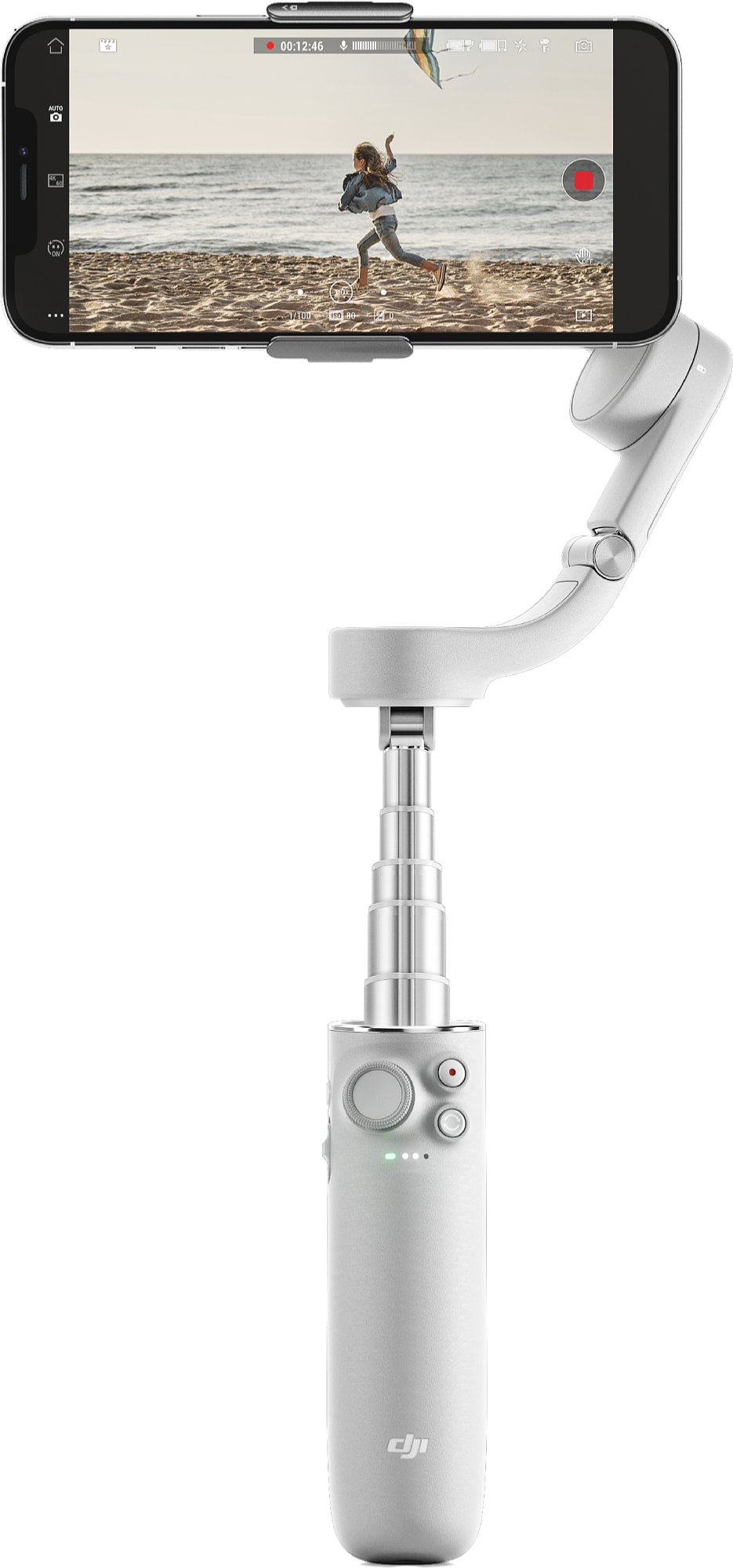 Die im Handgriff eingebaute, teleskopartig ausziehbare Verlängerung ist hier nicht hauptsächlich als "Selfie-Stick" zu verstehen, sondern sie soll neue, interessante Kameraperspektiven ermöglichen. Vom Vorgänger prinzipiell übernommen wurde die Handy-Klemme, die bei DJI mit einem Magneten versehen ist, sodass man Smartphone und Gimbal blitzschnell trennen und wieder zusammenfügen kann. Die Klemme wurde aber neu gestaltet und soll nun zu noch mehr Smartphones kompatibel sein, vor allem auch, wenn diese mit einer Hülle versehen sind. Für 49 Euro extra gibt es demnächst übrigens eine Klemme mit eingebautem LED-Licht, um den Nahbereich auszuleuchten.
