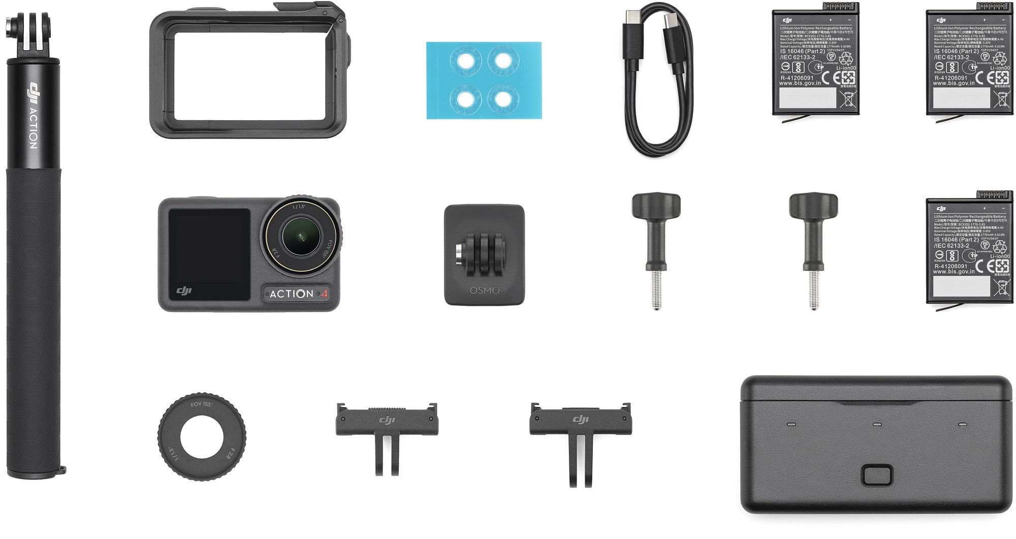 Die Osmo Action 4 ist auf store.dji.com und bei den meisten autorisierten Handelspartnern in verschiedenen Konfigurationen erhältlich. Die Osmo Action 4 Standard-Combo ist ab 429 € (abhängig von MwSt.) erhältlich und enthält die Osmo Action 4, einen Osmo Action Extreme Akku, den Osmo Action Schutzrahmen, die Osmo Action Schnellverschluss-Adapterhalterung, die Osmo Action Hafthalterung, eine Osmo Feststellschraube, ein USB-C auf USB-C PD-Kabel, eine Osmo Action Gegenlichtblende und ein Osmo Action Anti-Rutsch-Pad. Die Osmo Action 4 Adventure-Combo ist ab 529 € erhältlich und enthält die Osmo Action 4, drei Osmo Action Extreme Akkus, den Osmo Action Schutzrahmen, eine Osmo Action Schnellverschluss-Adapterhalterung, eine Osmo Action Mini-Schnellverschluss-Adapterhalterung, eine Osmo Action Hafthalterung, zwei Osmo Feststellschrauben, ein USB-C auf USB-C PD-Kabel, die Osmo Action Akkuladeschale (multifunktional), einen Osmo Verlängerungsstab (1,5 m), eine Osmo Action Gegenlichtblende und ein Osmo Action Anti-Rutsch-Pad.