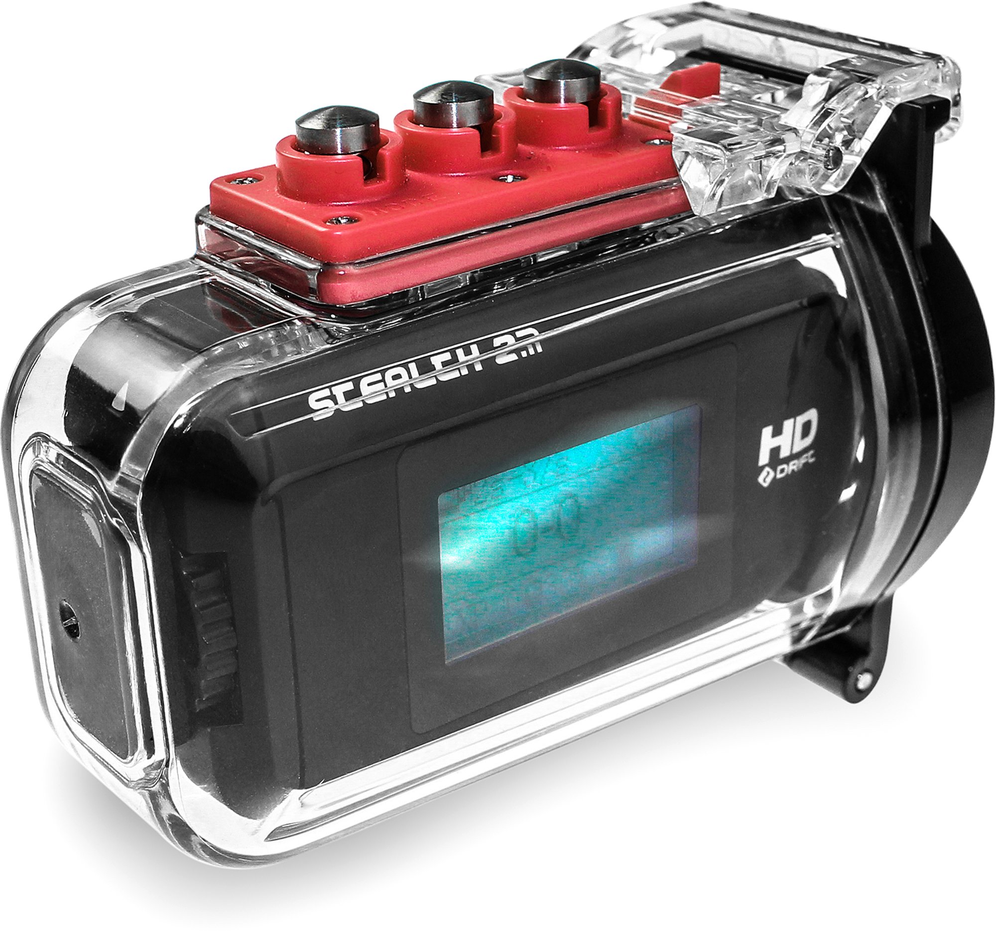 Die Stealth 2 wurde im November 2014 vorgestellt und ist im Internet aktuell für knapp unter 200 Euro zu haben (in Großbritannien und Frankreich sogar deutlich günstiger). Sie gehört mit einer geringen Baugröße und einem schlanken Betriebsgewicht von weniger als 100 Gramm zu den kleinsten und leichtesten Actioncams überhaupt. Jedenfalls, wenn man berücksichtigt, dass die Kamera selbst schon gegen Spritzwasser geschützt und robust ist. Tauchen darf sie so allerdings nicht. Dafür gibt es dann bei Bedarf ein 40-Meter-Unterwassergehäuse als Zubehör, das die Kamera dann aber natürlich auch größer und schwerer macht (was unter Wasser ziemlich egal ist). Die Kamera allein ist nur 8 Zentimeter lang und 2,7 Zentimeter tief. Das ist nur wenig größer als z. B. die extrem kleine Sony HDR-AZ1 (die allerdings mit 63 Gramm nochmal deutlich leichter ist), dafür hat die Drift (im Gegensatz zur Sony) ein großes Status-Display mit hohem Informationsgehalt und drei große Bedientasten.