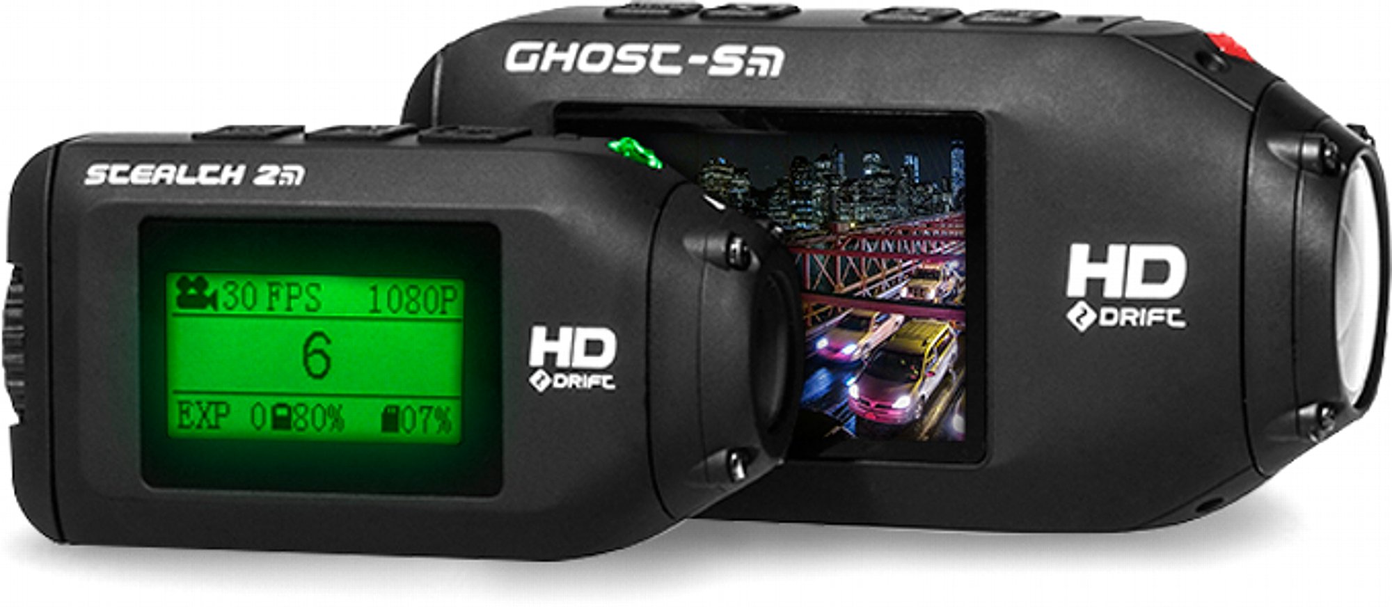 Der Unterschied der beiden aktuellen Kameramodelle liegt augenscheinlich zunächst in der Größe, aber auch in der Leistungsfähigkeit – und darin, dass die Drift Ghost-S einen richtigen Farbmonitor hat und die Drift Stealth 2 mit einem Monochrom-Status-Display auskommen muss. Fangen wir deshalb mit dem kleineren, neueren Modell Stealth 2 an.
