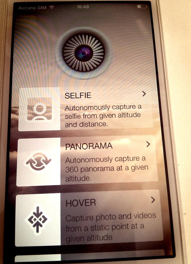 Am Beispiel des „Hover“-Modus‘ führen die Entwickler in einem Video vor, dass du die Fleye Drone über je einen Schieberegler links und unterhalb des Live-Bildes unkompliziert fliegen lassen kannst. Während die Auflösung des Live-View-Modus‘ bislang ungeklärt ist, bietet die Kamera der Fleye im aktuellen Entwicklungsstadium zumindest eine FullHD-Videoauflösung (1920x1080p) mit 30 Bildern pro Sekunde.