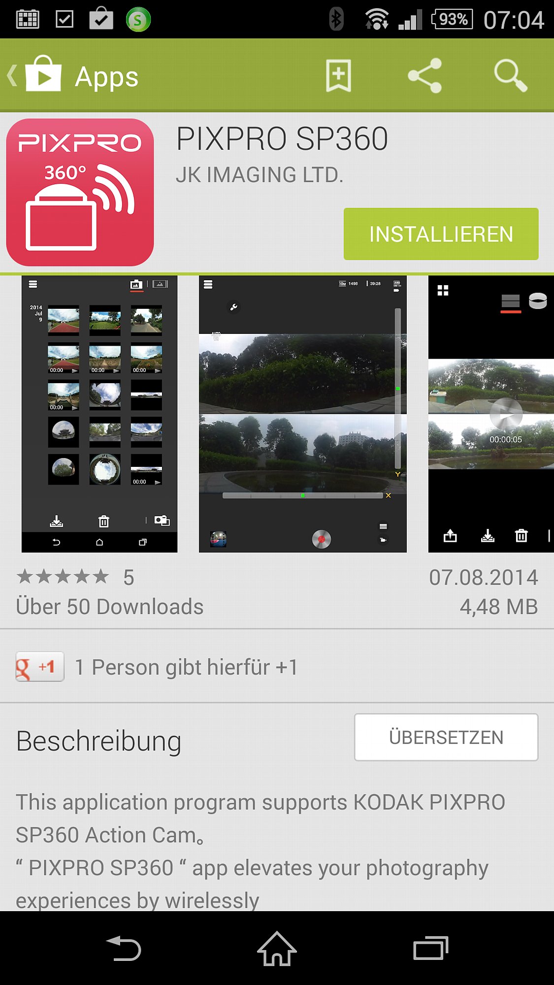 Das aufgezeichnete Video ist zunächst einmal ein kreisrundes Bild, das zwar lustig aussieht, mit dem man so aber noch nicht viel anfangen kann. Eine App bzw. ein Viewer-Programm muss die Sphäre zu einer planen Darstellung umrechnen. Dann kann man entweder wieder nur einen frei wählbaren Ausschnitt zur Zeit betrachten, also ähnlich wie bei einer motorisch schwenkbaren Überwachungskamera, nur dass hier nicht die Kamera schwenkt, sondern der Bildausschnitt rein elektronisch vom Betrachter gewählt wird. Alternativ betrachtet man mehrere Ausschnitte gleichzeitig oder zwei ganz breite Streifen untereinander, so dass man das ganze Bewegbildpanorama auf einen Blick sieht (siehe Screenshots von der App). Solcherlei Videos lassen sich natürlich nicht in klassischen Größen wie "FullHD" oder "720p" festlegen. Wie die Bildqualität und die Auflösung sein wird, müssen wir sehen, wenn ein Testgerät vorliegt. Solche Videos lassen sich (bislang) auch nicht mit handelsüblichen Videoschnitt-Programmen bearbeiten oder auf YouTube hochzuladen oder auf Facebook zu teilen. Man braucht immer Spezialsoftware zum Schneiden und zur Wiedergabe. Sicherlich wird das die größte Herausforderung bei dem Projekt sein: Eine Infrastruktur und Software bereitzustellen, die man gerne benutzt und die Qualitativ mit etablierten Lösungen mithalten kann. Das Ganze wohlgemerkt für Videos, nicht für Standbilder (was ungleich einfacher wäre). Auf jeden Fall ist die Pixpro SP360 ein sehr interessantes Projekt, das Kodak bzw. JK Imaging sicherlich viel Aufmerksamkeit einbringen wird.