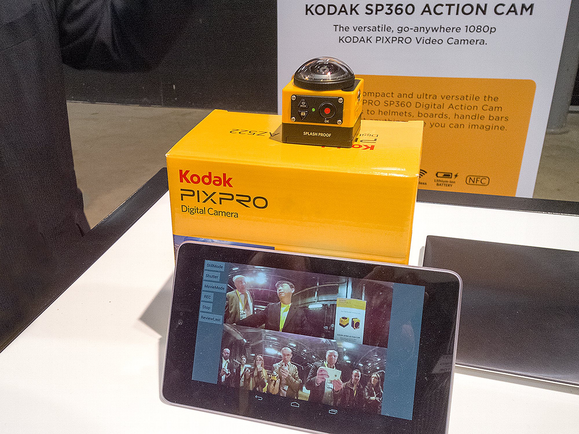 Die Kodak Pixpro SP360 wird in der Lage sein, die ganze Szene in einem einzigen Videostream aufzunehmen. Bewegtbilder wohlgemerkt, nicht Standbilder wie es zum Beispiel die Ricoh Theta Panoramakamera macht. Im Gegensatz zu der Theta (oder der Panono Ball-Kamera) nimmt die Kodak allerdings keine "vollsphärischen" Panoramen auf, sondern im Grunde nur die obere Hälfte plus einen kleineren Teil darunter (der vertikale Bildwinkel soll etwa 120 Grad betragen). Es wird also alles aufgenommen, was rund um die Kamera herum vor sich geht, sowie alles oberhalb der Kamera (aber nicht direkt unterhalb der Kamera). Würde man sie über Kopf montieren, beispielsweise an einer Zimmerdecke, dann würde von dort aus der gesamte Raum erfasst werden. Das machen Überwachungskameras ja auch, aber diese erfassen zur Zeit normalerweise nur einen Bildausschnitt und müssen gedreht und geschwenkt werden, um einen Bereich abzufahren. Die Kodak Pixpro SL360 erfasst die komplette Szene gleichzeitig. Allerdings gibt es tatsächlich (vom schwedischen Netzwerkkamera-Spezialisten Axis) schon mehrere verschiedene professionelle fest installierbare Überwachungskameras (Netzwerkkameras), die genauso arbeiten. Grundsätzlich neu ist also nicht das Prinzip, sondern neu ist die Anwendung in einem tragbaren Gerät. An dem Thema der tragbaren 360°-Kameras sind mittlerweile auch andere dran. Wir berichteten beispielsweise bereits über das Croudfunding-Projekt "Centr Camera" aus San Francisco, dessen Ergebnis eine Rundum-Videokamera sein sollte. Das Projekt sammelte allerdings nur rund zwei Drittel der erforderlichen Finanzierungssumme ein, war also nicht erfolgreich. Fairerweise will ich noch erwähnen, dass es unter anderem für die Blogger-Kameras von Sony ("Bloggie"-Serie) einen 360°-Aufsatz gibt, der über einen kegelförmigen Spiegel ein 360°-Bild auf das Objektiv projiziert. Die Sony-Kamera macht daraus dann ein 360°-Video.