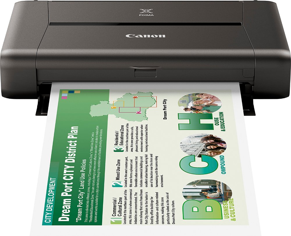 Für eine gute Druckqualität sorgt Canons FINE Technologie mit 5-Tinten-System und bis zu 9.600 dpi Auflösung. Es gibt einen Tank für die Schwarztinte und einen Farbtank. Die Druckeroption "Schwarztinte sparen" erweitert die Tintenreichweite und sollte die Schwarztinte einmal tatsächlich ausgehen, greift der iP110 für den Schwarz-Weiß-Druck auch auf die Farbtinten zurück. Ein Foto im Format 10 x 15 Zentimeter druckt der Kleine laut Canon in 53 Sekunden, bis zu neun Seiten pro Minute sind es in Schwarz-Weiß und bis zu 5,8 Seiten pro Minute in Farbe. Der iP110 kostet 300 Euro und kommt im Oktober 2014 in den Handel. Der iP110 löst den iP100 ab.