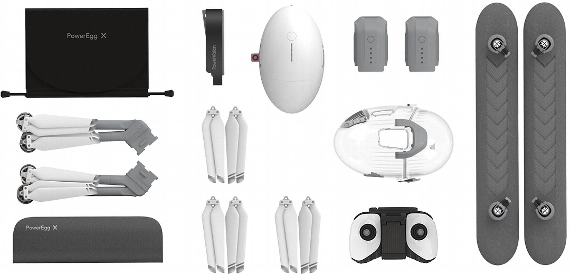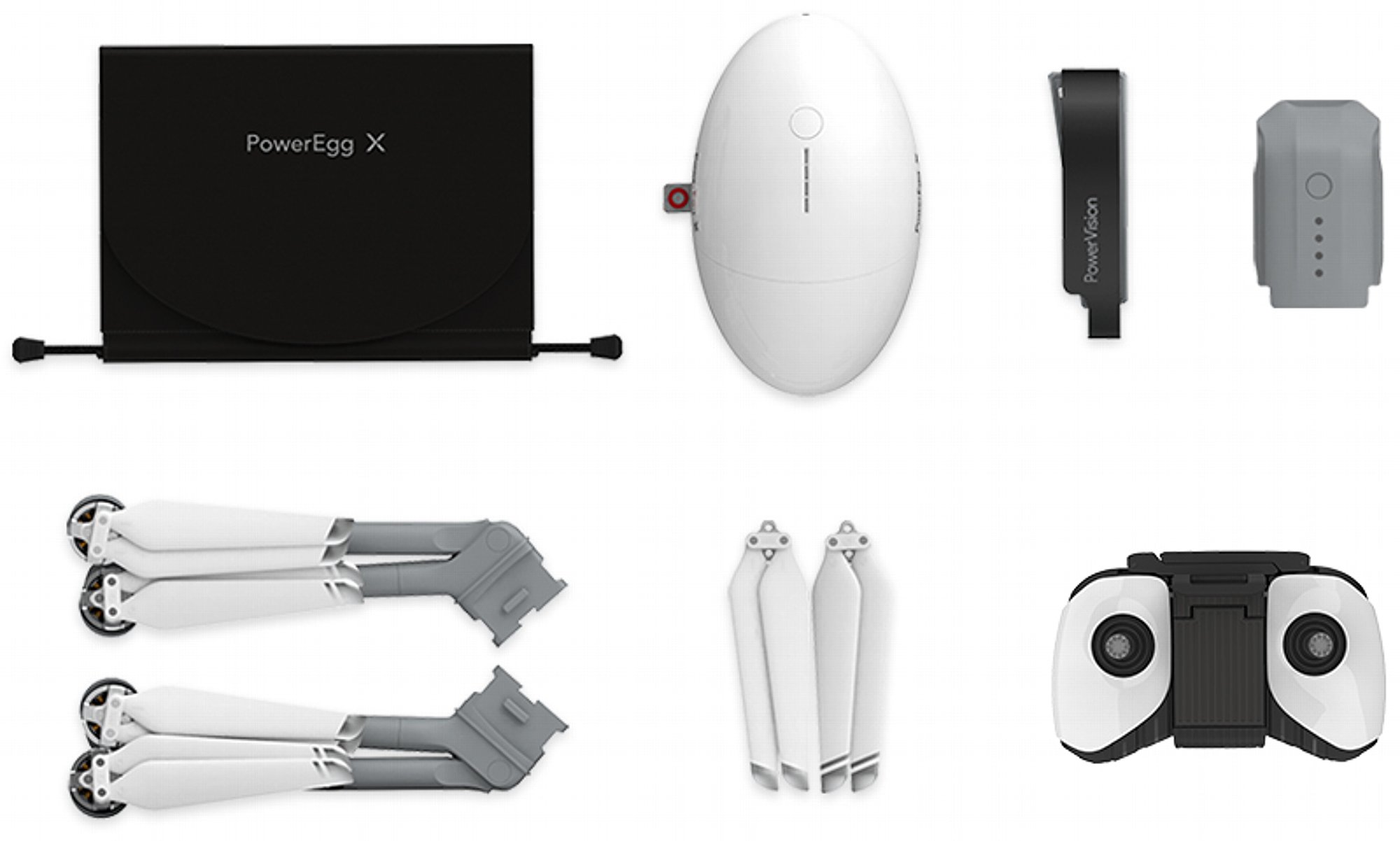 Nun greift PowerVision das Ei-Thema wieder auf, allerdings in völlig anderer Form als damals. Das PowerEgg X genannte neue System besteht aus einem Ei-förmigen Grundgehäuse, das Elektronik, Akku und eine 3-Achs-Gimbal-Kamera enthält. Dieses lässt sich mit einer Handschlaufe als tragbare Gimbal-Kamera nutzen oder auf einem Stativ montieren, um beispielsweise per künstlicher Intelligenz gesteuert mit Hilfe von Gesichts- und Personenerkennung automatische Aufnahmen zu machen.