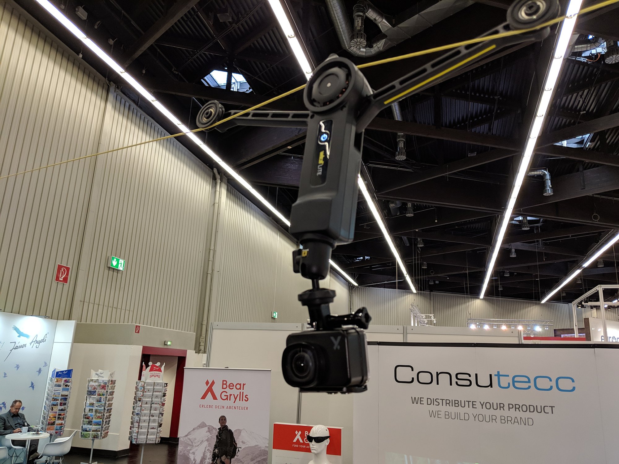 Um die Cable Cam aufzubauen, spannst du zunächst das mitgelieferte gelbe Seil auf bis zu 50 Metern länge. Dann montierst du deine Kamera (z. B. eine Actioncam oder auch eine andere leichte Kamera) an dem Wiral Lite, klappst den auf und hängst ihn in das Seil ein. Danach kann es losgehen. Mit der Fernbedienung kannst du Endpunkte auf dem Seil programmieren, über die die Seilbahnkamera nicht hinausfährt. Und du kannst mit dem Drehrad der Fernbedienung die Geschwindigkeit der Cable Cam in beide Richtungen steuern. Mit etwas Übung kannst du sie sanft anfahren lassen und wieder bremsen. Dadurch, dass die Steuerung über die mitgelieferte Fernbedienung erfolgt, bleibt das Smartphone frei z. B. für die Steuerung der Actioncam oder z. B. eines Gimbals, mit dem dann auch noch die Blickrichtung der Kamera gesteuert werden kann. Kamera und Gimbal sind nicht im Lieferumfang, sondern wirklich nur der Motor und das Seil.