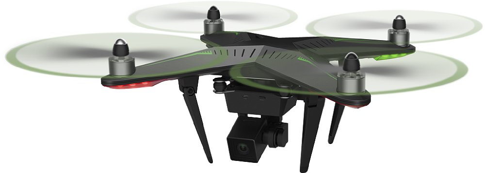 Die Diagonale von Rotor zu Rotor misst 35 cm – das ist so in etwa die Größe eines DJI Phantom, du du vielleicht kennst. Mit (austauschbarem) Akku zusammen wiegt das Gerät knapp 1000 Gramm, durch den Gimbal-Head mit Kamera kommen noch 200 Gramm hinzu (auch vom Gewicht her vergleichbar mit dem bekannten DJI Phantom). Mit einer maximalen Geschwindigkeit von 54 Kilometern pro Stunde und einer Beschleunigung von 6 Metern pro Sekunde befindet sich der Xplorer Vision, verglichen mit seinen Kollegen dieser Preisklasse, in einem guten Mittelfeld. Höchstens 120 Meter Flughöhe sind möglich und das Signal der Fernsteuerung grenzt die größtmögliche Distanz auf theoretisch 500 Meter ein. Auf die Distanz wirst du den Kopter aber schon kaum mehr sehen können. Der Lithium-Polymer-Akku hat eine Kapazität von 5200 mAh und ermöglicht mit einer Ladung eine maximale Flugzeit von knapp 20-25 Minuten (heute ein üblicher bis guter Wert).