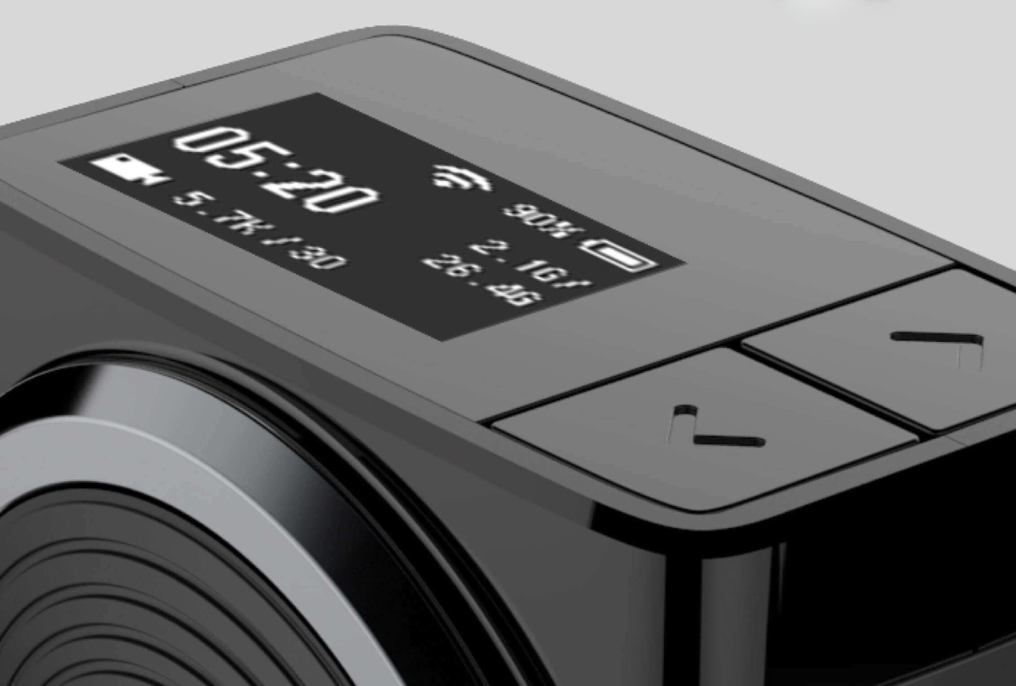 Auf der Oberseite der YI 360 VR gibt es ein Monochrom-OLED-Displey und zwei Pfeiltasten zur Bedienung. [Foto: Yi Technology]