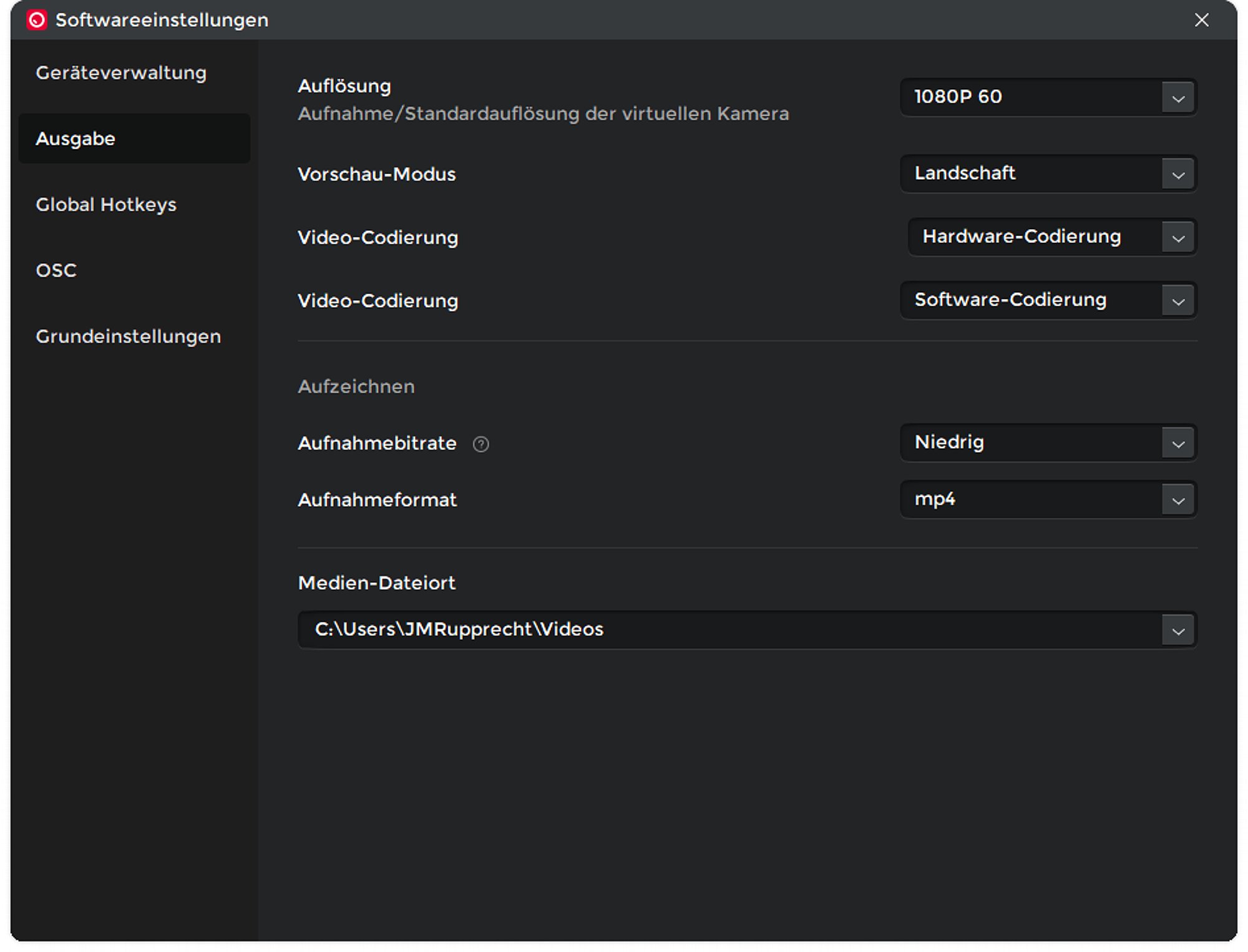 Die Software OBSBOT Center ist unglaublich mächtig. Sie kann bis zu vier OBSBOT-Kameras einstellen und steuern, einschließlich der Gimbals der diversen Gimbal-Kameras oder der "virtuellen Gimbals" der Kameras der OBSBOT Meet-Serie. Für die Tiny SE gibt es zahllose Einstellungen, von der Auflösung und Bildfrequenz, der Ausrichtung (Querformat oder Hochformat, hier vom Englischen wörtlich mit Landschaft und Porträt übersetzt), der Bitrate und anderen zahlreichen Grundeinstellungen.