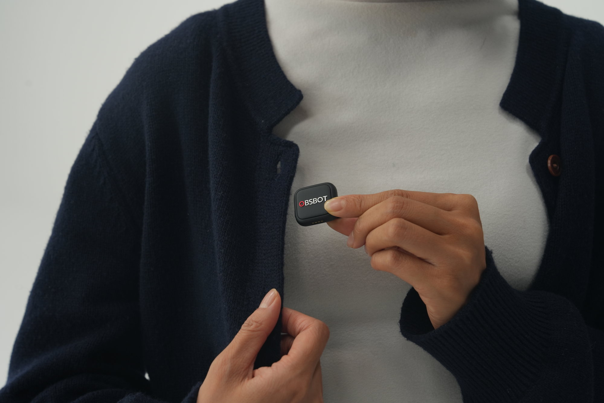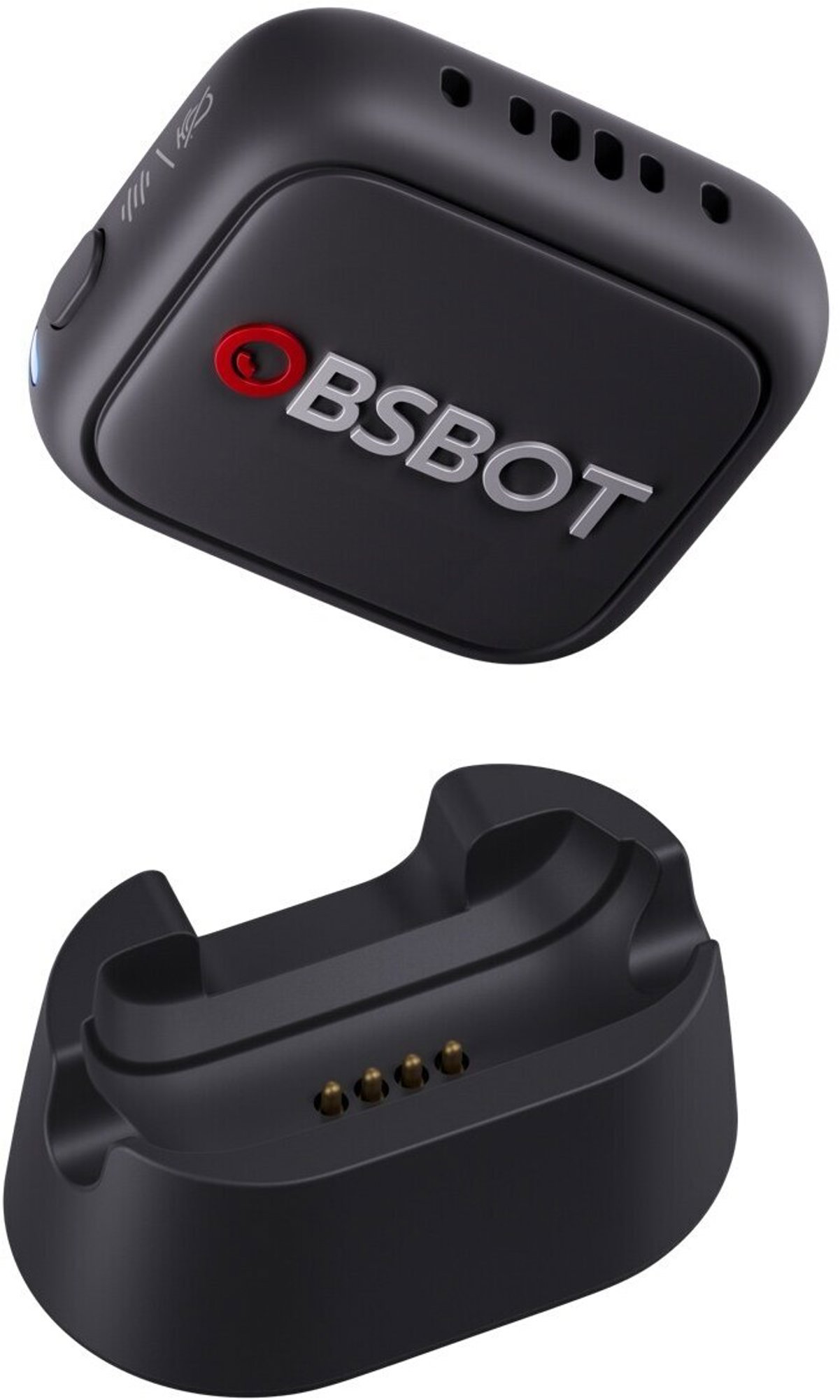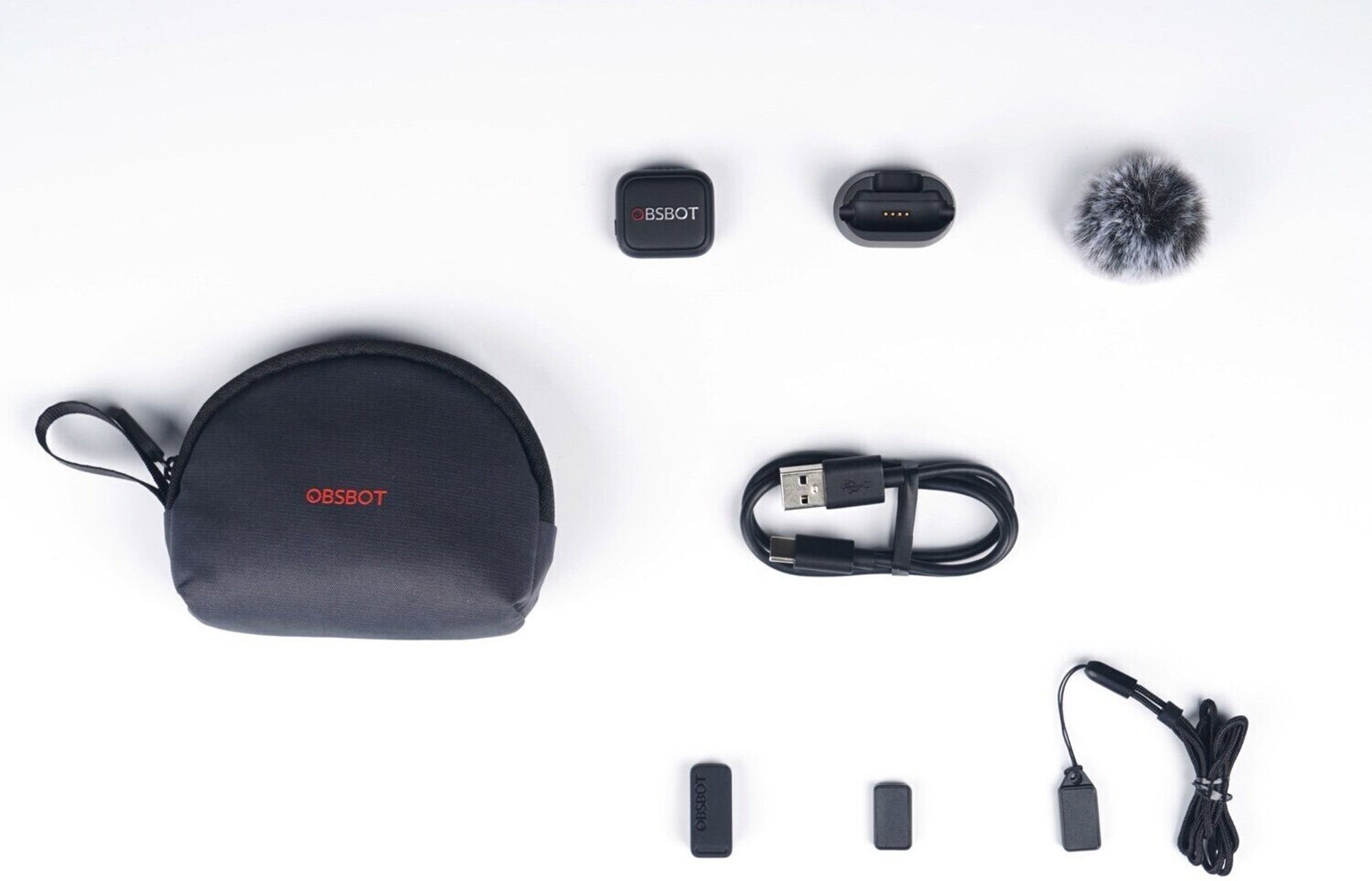 Die Qualität des Drahtlos-Ansteckmikrofons Obsbot Vox SE ist ebenfalls tadellos. Das kleine Ding bietet sich immer dann an, wenn sich der Sprecher frei im Raum bewegen möchte, z. B. ein Lehrer im Unterricht oder ein Sprecher während eines Vortrags. Allerdings muss man sich in den Einstellungen zwischen dem internen und dem externen Mikrofon entscheiden. Beides parallel geht nicht. In einer Konferenz, in der man mal den Sprecher und mal die Teilnehmer im Raum aufnehmen möchte, müsste man wiederholt manuell an der Obsbot-Software umschalten. Sehr praktisch an dem Mikrofon ist übrigens, dass man auch der kleinen Taste, die lang gedrückt das Mikrofon ein- oder ausschaltet, eine Funktion zuweisen kann. Standardmäßig kann man auch damit die Menschenverfolgung ein- und ausschalten. Alternativ lässt sich damit aber auch etwa die Videoaufnahme starten und stoppen oder der Zoom auf 1-fach zurückfahren.