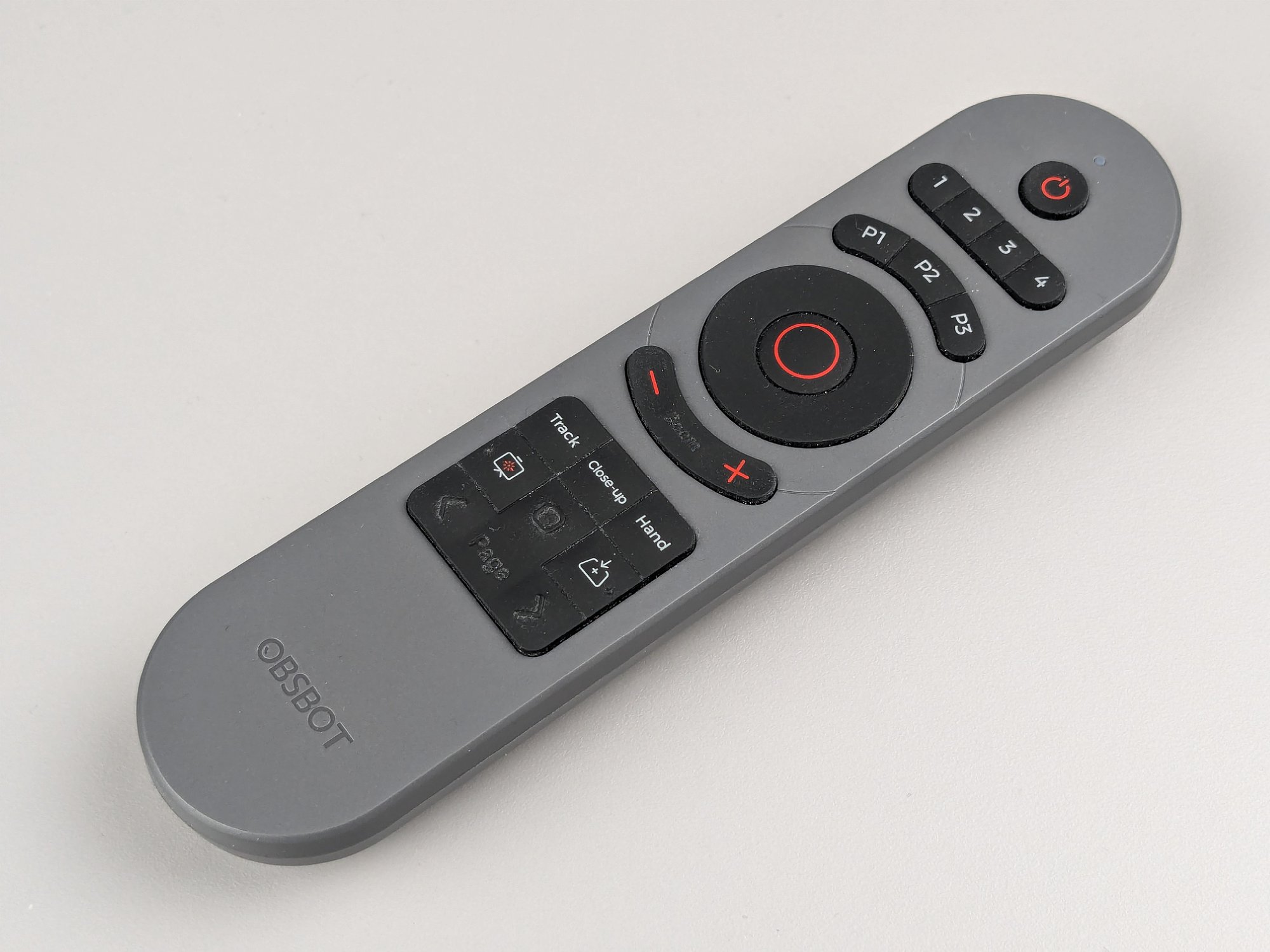 Um die Bedienung des Gimbals, des Zooms und anderer Funktionen vom PC zu entkoppeln, gibt es die drahtlose Fernbedienung Tiny Smart Remote 2. Diese wird mit zwei AAA-Batterien (nicht im Lieferumfang) betrieben und nimmt über einen im Batteriefach geparkten USB-Funkempfänger Kontakt mit dem Präsentations-PC auf. Damit das Ganze aber überhaupt funktioniert, muss auf dem PC allerdings die Obsbot Center Software installiert und dort muss die Fernbedienungsfunktion eingeschaltet sein. Autark funktioniert die Fernbedienung also nicht. Sie steuert eigentlich nicht die Kamera, sondern den PC. Und der PC steuert die Kamera.