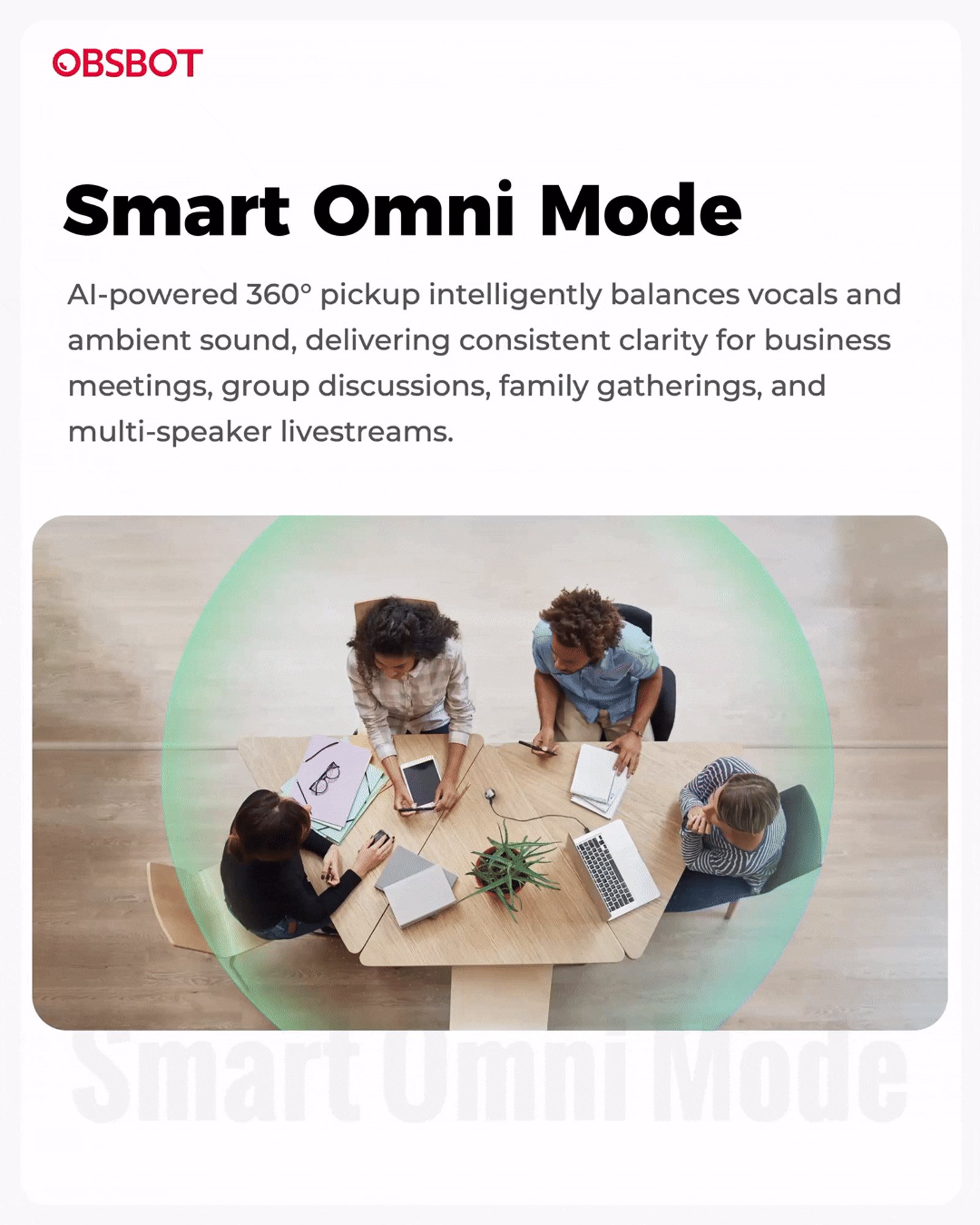 Generell ist bei allen Obsbot -Kameras bislang das sogenannte AI Tracking (also Objektverfolgung mittels Künstlicher Intelligenz) ein herausragendes Merkmal und die Spezialität des Herstellers. Egal ob einfache Meet SE Webcam oder professionelle Tail 2 Live-Produktionskamera: Die Kameras sind – im Rahmen ihrer jeweiligen Möglichkeiten – in der Lage, Motive innerhalb ihres Blickfeldes zu erkennen und zu verfolgen (wohlgemerkt die Kameras selbst und nicht etwa eine Software im PC). Bei der Meet-Serie erfolgt das per Ausschnittvergrößerung der Aufnahme der Ultraweitwinkelkamera, bei den Tiny- und Tail-Modellen ganz professionell per Schwenk-Neigekopf. Die professionelle Tail 2 kann zusätzlich sogar noch optisch zoomen und die Kamera ins Hochformat drehen. Die Steuerung kann dabei außer über Software auch über Gesten erfolgen, die die Kamera erkennt. Das leistungsfähigste „AI Tracking 2.0“ hatte bislang die professionelle Tail 2 und ebendieses befindet sich nun auch in der Tiny 3.