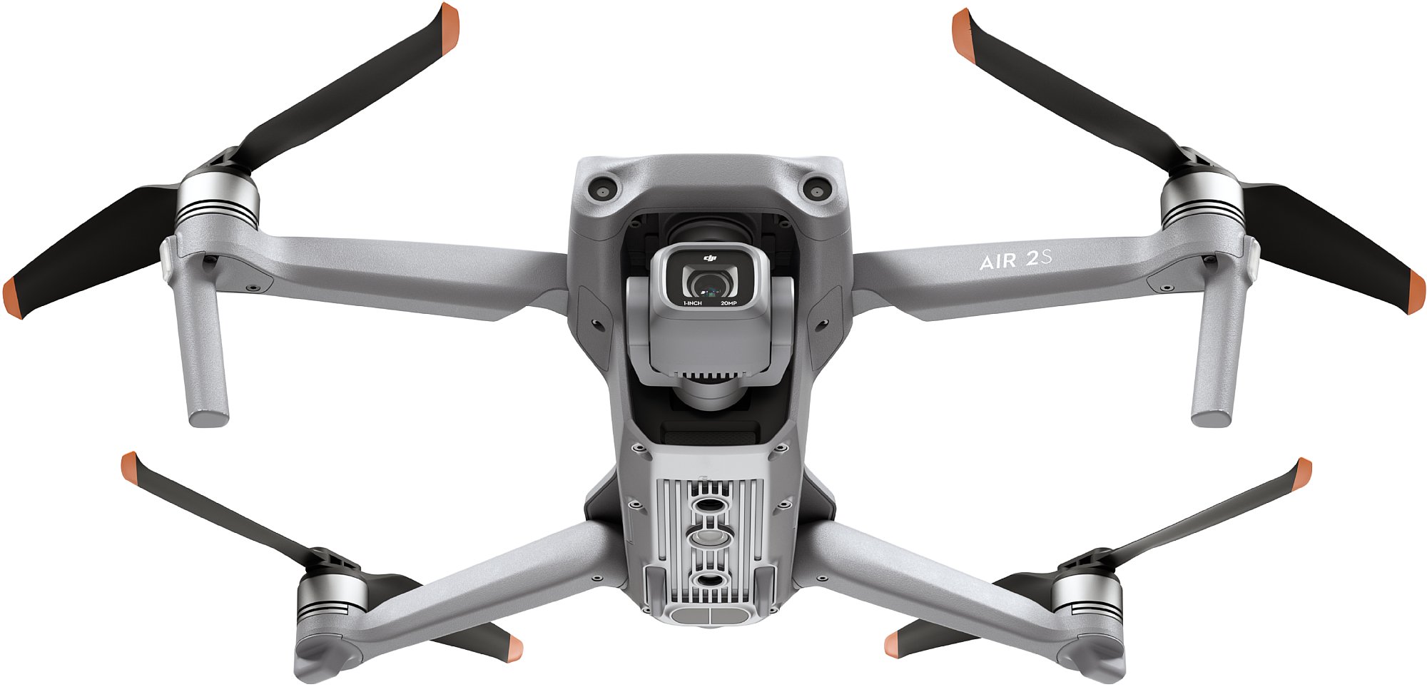 Bei der Drohne selbst sind die Propeller schnell und ohne Werkzeug mit einem pfiffigen Bajonett-Verschluss montiert. Die Propeller sind klappbar, aber etwas schwergängiger als bei anderen Drohnen. Sie müssen von Hand wenigstens halbwegs in die richtige Stellung gebracht werden, ganz von selbst entfalten sie sich nicht. Die DJI Air 2S ist sehr flach gebaut. Ein "Landegestell" gibt es praktisch nicht. Lässt man sie von einer Wiese aus starten, muss das Gras schon ziemlich kurz gemäht sein, andernfalls schlagen die Flügel gegen die Grashalme und die Drohne bricht den Start ab. Ggf. muss man einfach etwas drunter legen oder die Drohne von der Tasche aus starten lassen. Beim Landen ist das nicht so kritisch. Die Drohne landet auch in höherem Gras. Die Kamera wird dabei vor dem Aufsetzen im Gimbal nach vorne ausgerichtet, damit die Frontlinse beim Landen auf unebenem Grund keinen Schaden nimmt.