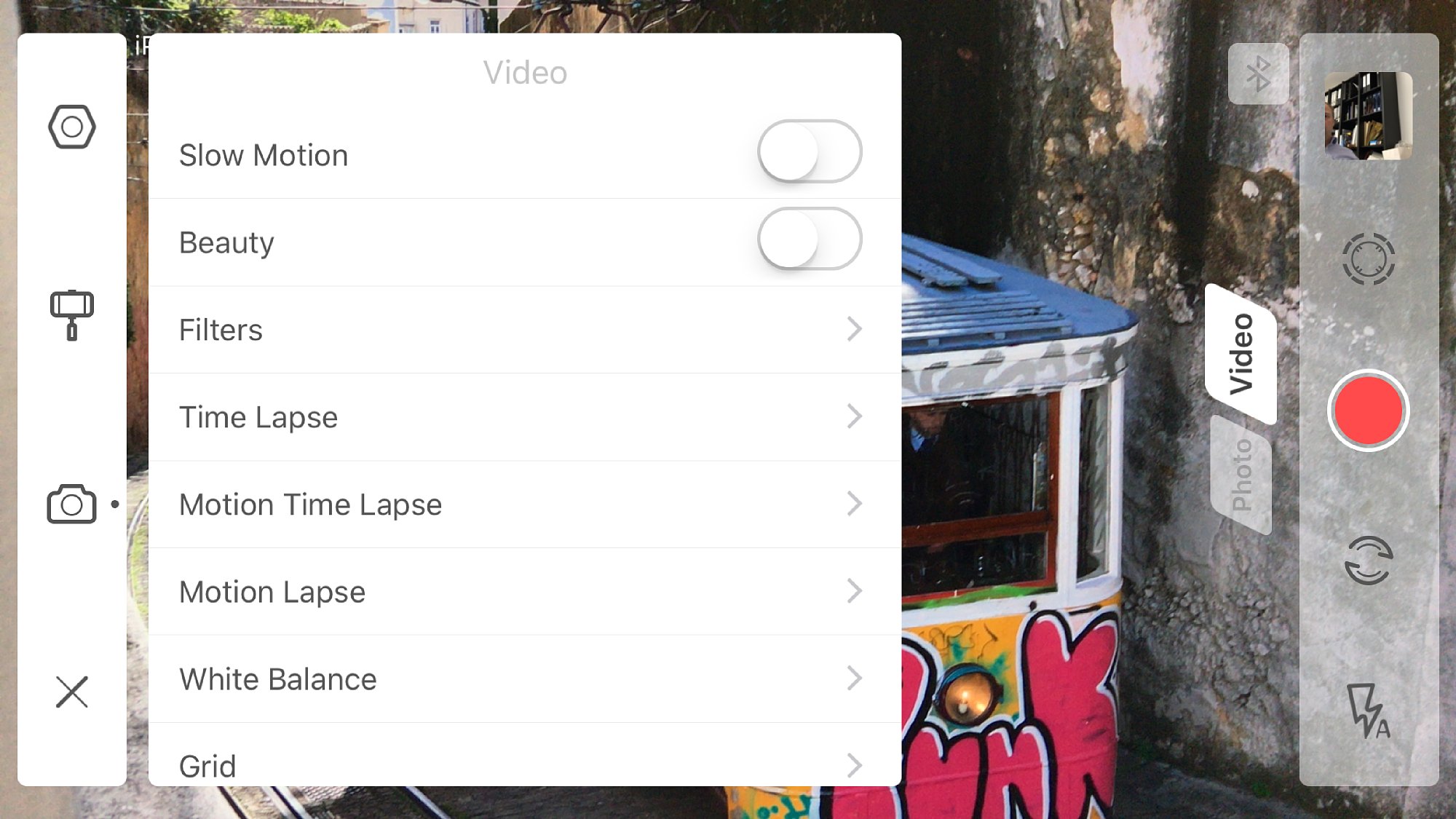 Also das Ganze nochmal mit iOS, in diesem Fall auf einem Apple iPhone 6s Plus. Hier ist, anders als unter Android, alles gut. Die App heißt wirklich "FV Share" (warum auch immer hier mit Leerzeichen) und ist unter diesem Namen im iOS App-Store zu finden und schnell installiert. Die Verbindung zum Gimbal klappt ebenso schnell per Bluetooth und die Möglichkeiten, die die iOS-Version bietet, gehen offenbar sogar noch etwas weiter als wir es in der Android-Version gesehen haben. Anders als unter Android ist die iOS-App auch stabil. Abstürze oder Einfrieren hatten wir nicht und die Bedienung funktionierte auch so, wie man es erwarten würde. Die App ist nur in Englisch (oder wahlweise Chinesisch), was aber meist nicht groß stört. Teilweise fehlt es aber an Erklärungen. Nicht bei allen Optionen wird klar, wozu die sind. Auch die Bedienungsanleitung gibt dazu keine Auskunft, sondern befasst sich eigentlich nur mit der Hardware. Mit etwas Ausprobieren kommt du aber sicherlich zum Ziel. Die Standard-Funktionen wie Fotos machen (wozu eigentlich mit einem Gimbal?) und Videos drehen erklären sich eigentlich sowieso mehr oder weniger von selbst.