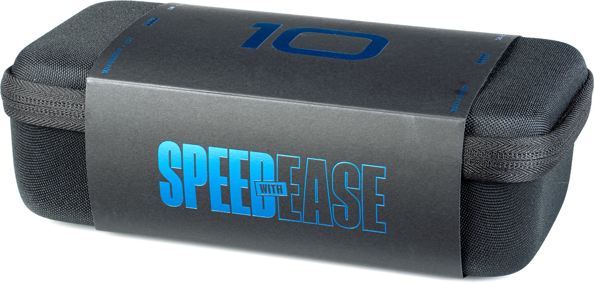 Die Hero10 wird in einer praktischen Aufbewahrungstasche geliefert, unser Testgerät (oder vielleicht auch generell die finale Version) unterschied sich von den Pressefotos durch noch weniger Verpackung: Um die Tasche herum war einfach eine schicke Banderole, die man abnehmen und wieder aufschieben kann, ohne etwas zu zerstören. Die Tasche selbst enthält eine recht sperrige ausgeformte Einlage aus Recycling-Material. Weiteres optionales Zubehör (Akkus oder Zusatzmodule beispielsweise, dazu später mehr) findet darin nicht Platz, was die Tasche dann doch nicht wirklich praktisch macht. Man kann das Inlay natürlich rausnehmen, aber dann poltert alles lose in der Tasche herum. Insgesamt ist die Tasche für eine so kleine Actioncam recht groß.