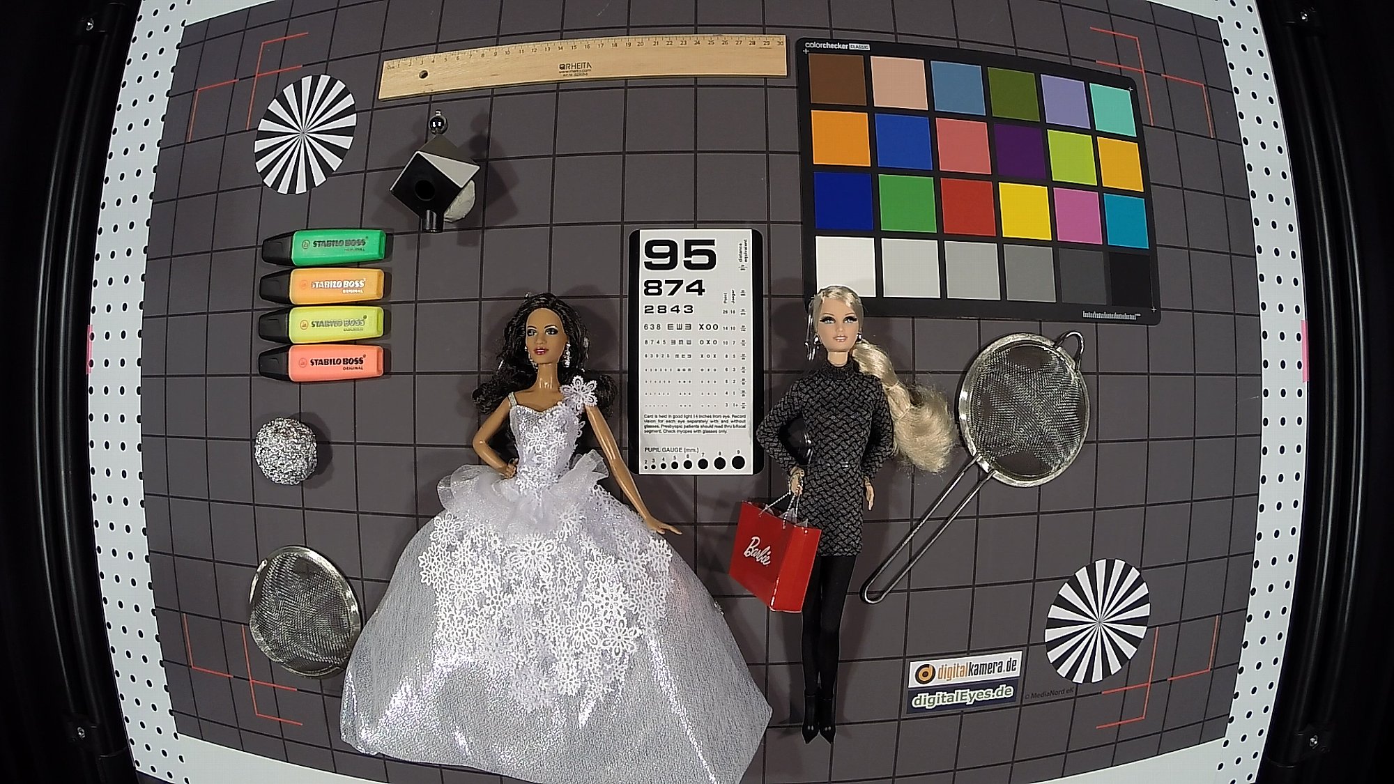 Auch neu: Super View und Auto Low Light-Modus und bessere Linse. Super View ist ein neuer Ultra-Weitwinkel-Modus. Den stellst du nicht über den Menüpunkt "Field of View" (Bildwinkel) ein (Wide/Medium/Narrow), sondern findest ihn du in der App unter "Video Resolution". Der Ultra-Weitwinkel hat nämlich Einfluss auf die maximale Bildwiederholrate. Die ist bei "1080 Super View" dann 24, 30 oder 48 Bilder pro Sekunde in Stellung "NTSC" oder 48, 35 oder 24 B/s in der Stellung "PAL". Da man unterschiedliche Bildwiederholraten in einem Projekt ja möglichst nicht mischen soll, hat der normale 1080-Modus auch die 48 Bilder pro Sekunde spendiert bekommen. Die maximale (und sinnvolle) Bildwiederholrate liegt dort bei 60 B/s (NTSC) bzw. 50 B/s (PAL). Super View sieht zwar spektakulär aus, ist aber nicht unbedingt schön. Für Luftaufnahmen kann ich mir das gut vorstellen. Überall wo Personen im Bild sind, kommt das aber wohl eher nicht infrage. In dem Modus wird nämlich das extreme Weitwinkel, das auch bei 4:3-Fotoaufnahmen verwendet wird, auf das 16:9-Videoformat gestaucht. Dies zwar nicht in der Mitte, dort bleiben Kreise rund, aber zum Rand hin zunehmend. Das sieht nicht schön aus.