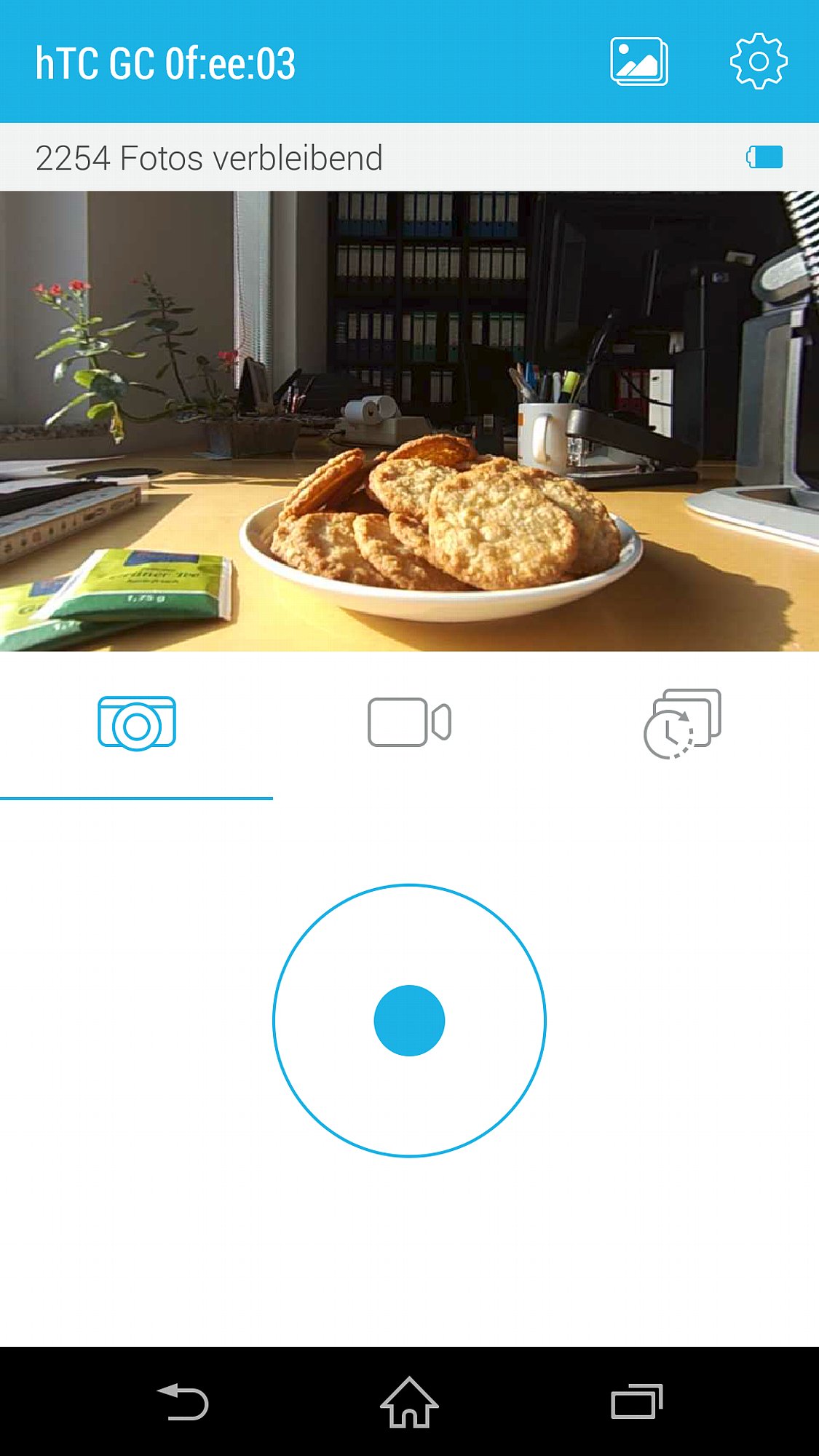 Nach dem Ein-/Aus-Prinzip entscheidest du zudem, ob für Zeitraffer vor jedem Foto ein Blink-Countdown erfolgen, Überkopf-Aufnahmen gedreht werden und deine Videos stabilisiert werden sollen. Auch die Kamera-Sounds (schrilles Piepen für Videoaufnahmen und inhalator-ähnliches Zischen für den Foto-Auslöser) kannst du mithilfe deines Smartphones abstellen. Letztendlich steht dir noch ein Live-Sucher zur Verfügung, der sein Prädikat nicht verdient – dafür ist die Verzögerung zwischen Geschehnis und Übertragung desselben einfach zu groß. Dafür ist das Bild verhältnismäßig hoch auflösend. Unter dem Sucherbild hast du die Möglichkeit, den Aufnahmemodus zu wählen und nur hier gelangst du zur Option, einen Zeitraffer zu erstellen. In den Feineinstellungen legst du fest, in welchem Abstand und über welchen Zeitraum Bilder produziert werden sollen und in welcher Rate sie anschließend zu flüssigem Videomaterial zusammengeschnitten werden (in MP4). Übrigens speichert die HTC RE alle geschossenen Fotos dennoch als JPGs ab, damit du nachher noch die Möglichkeit hast, manuell ein Video zu erstellen oder einzelne Bilder zu bearbeiten.
