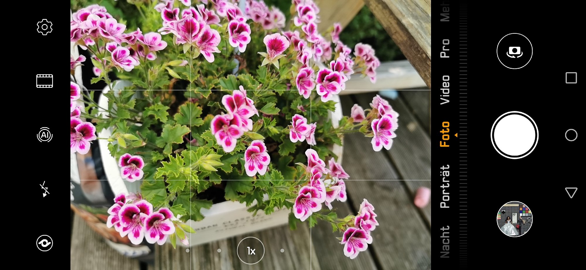Bezüglich der Farbwiedergabe können wir übrigens nicht meckern. Dass normalerweise zwei grüne und nicht zwei gelbe Pixel pro Vierergruppe verwendet werden, hängt ja damit zusammen, dass in der Natur viel Grün vorkommt und man diese Farbe möglichst präzise und detailliert aufnehmen möchte. Huawei zeigt aber, dass dies offenbar auch mit gelben Farbfiltern gut funktioniert. Grüntöne werden jedenfalls nicht schlechter wiedergegeben als bei anderen Kameras mit normaler RGB-Farbfilter-Bestückung. Generell sind die Farben auch in der Standard-Einstellung schon etwas quietschig, also ziemlich kräftig. Bei Blumen beispielsweise, deren Blüten einen sanften Verlauf von Weiß nach Lila haben, ist auf den Fotos dann deutlich mehr Lila als in Wirklichkeit vorhanden. Die Farbwiedergabe entspricht etwa dem, was man normalerweise unter "Vivid Color" oder "Kräftige Farben" (oder "Velvia Film" bei Fujifilm-Systemkameras) einstellt. Ich stelle Kameras häufig so ein, weil mir kräftige Farben gefallen. Und so sieht Huawei das offenbar auch: Die Fotos sollen gefallen und nicht die Wirklichkeit naturgetreu wiedergeben.