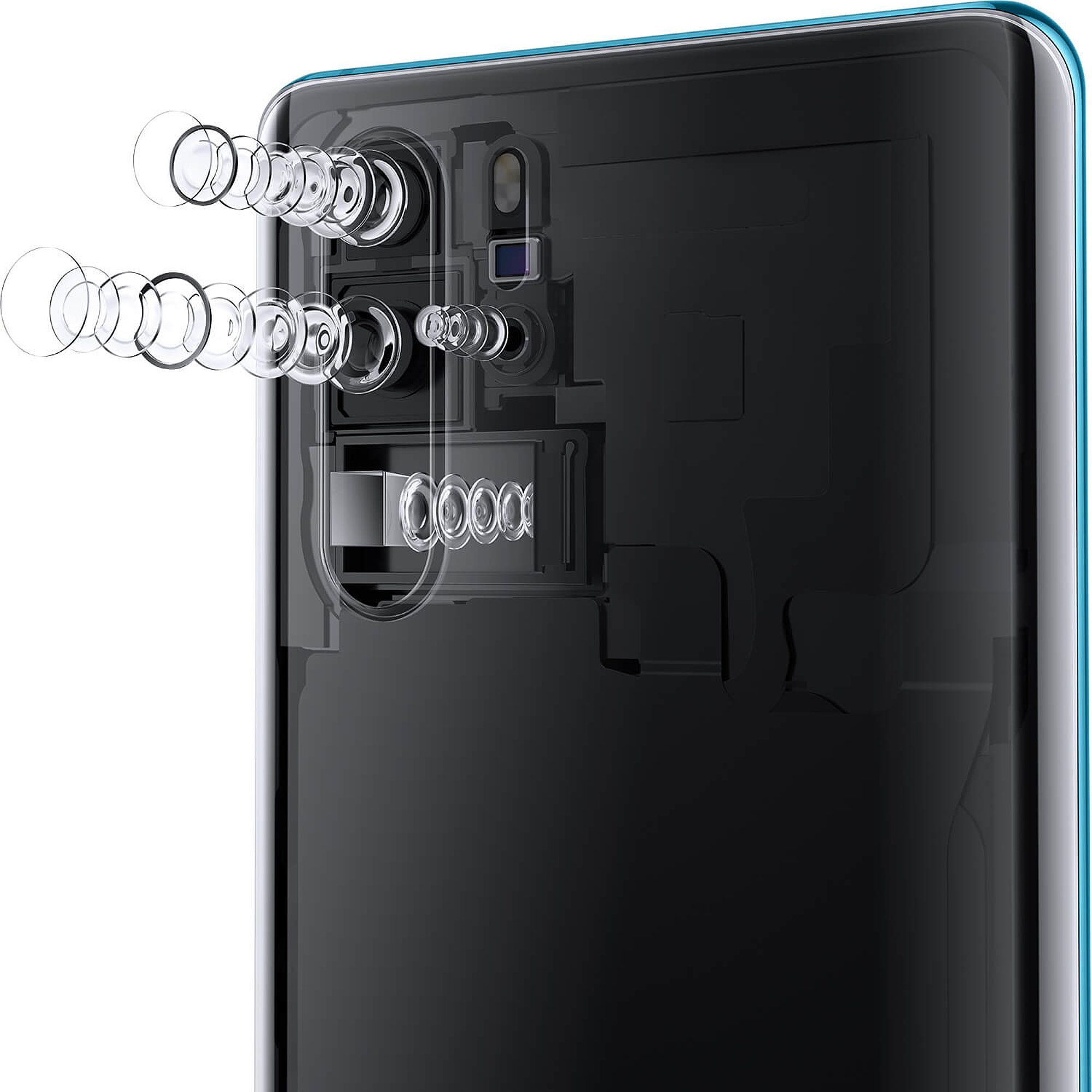 Die Kamera des Huawei P30 Pro setzt sich aus vier Sensoren zusammen, drei davon liefern die Fotos, ein vierter Sensor die Tiefeninformationen, d. h. wie weit die verschiedenen Motivteile bei der Aufnahme vom Smartphone entfernt sind. Das wird zur Berechnung des Bokeh-Effekts verwendet, mit dem bei Porträt-Aufnahmen der Hintergrund unscharf gezeichnet wird, um einen Effekt nachzuahmen, wie man ihn bei konventionellen Kameras mit großem Sensor in Verbindung mit einem lichtstarken Objektiv erreichen würde. Diesen so genannten TOF-Sensor bietet nur die Version P30 Pro, nicht die Version P30 (ohne "Pro"). Die eigentlichen Fotos kommen in beiden Fällen aber aus den drei eigentlichen Kameramodulen, auf die wir nachfolgend eingehen. Dazu gibt es noch eine Frontkamera mit sehr vielen Megapixeln (dazu weiter unten mehr).