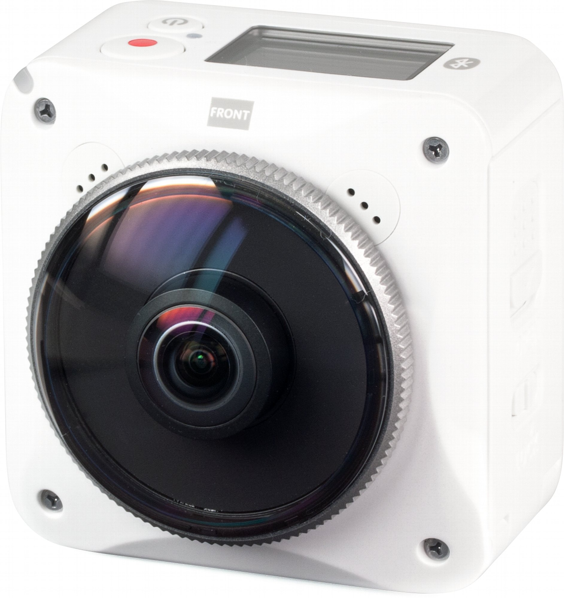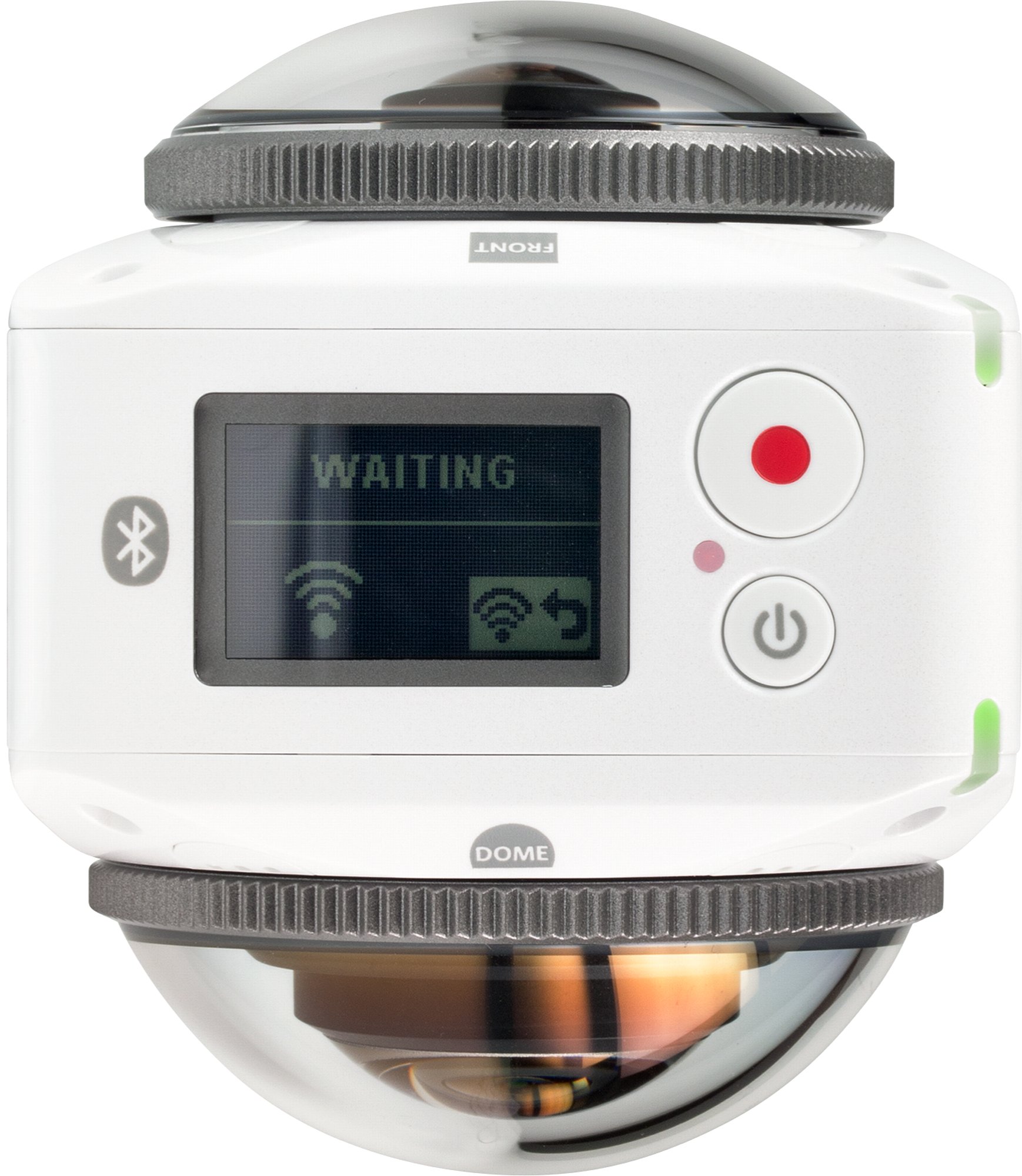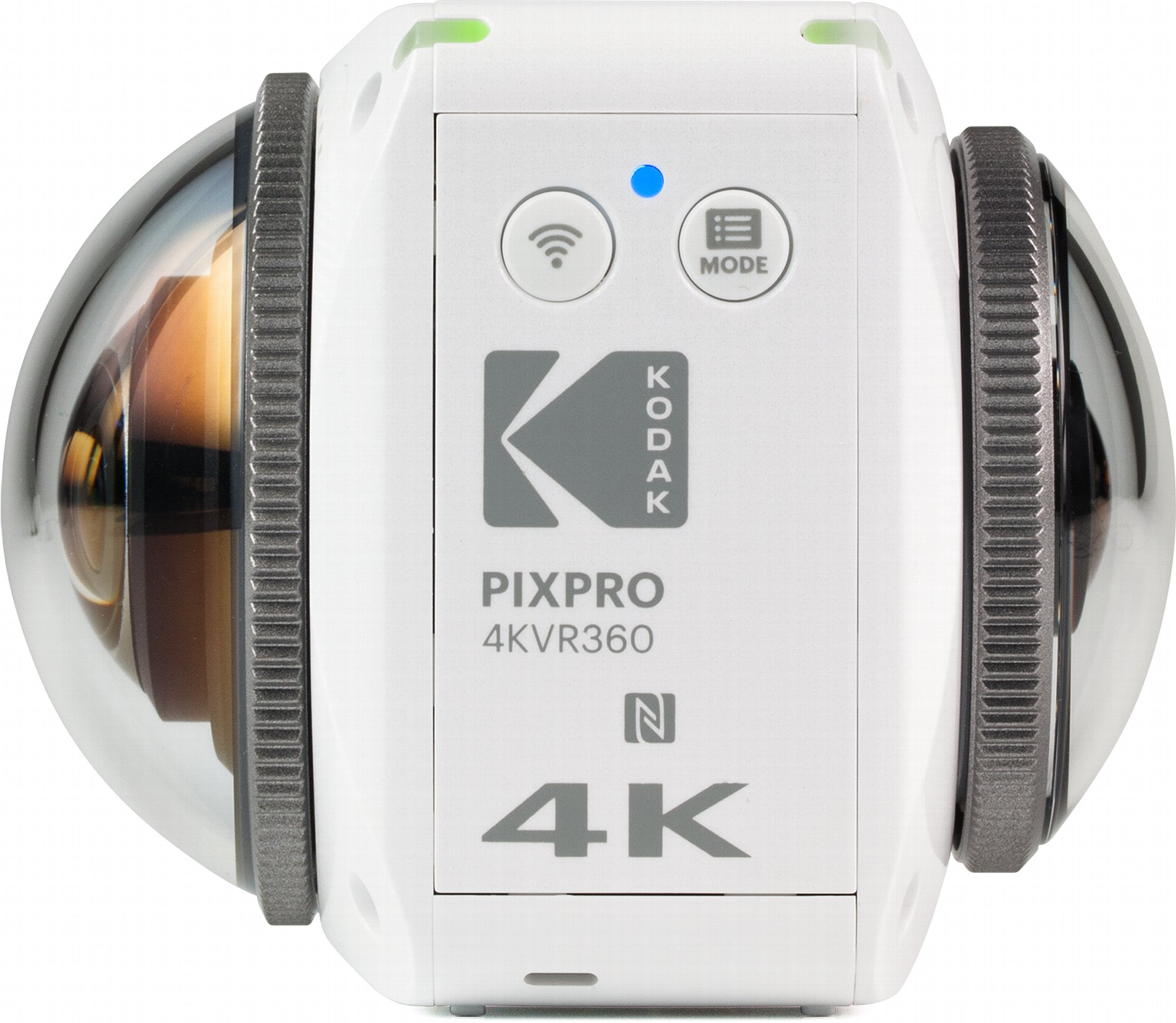 Das "Key-Feature" der Pixpro 4KVR360 sind ihre beiden unterschiedlichen Objektive. Das unterscheidet sie tatsächlich von allen anderen Panorama-Kameras auf dem Markt, die normalerweise zwei identische Objektive mit einem jeweils 180 Grad leicht überlappenden Bildwinkel haben. Die Pixpro 4KVR360 besitzt jedoch ein 155°-Objektiv und ein 235°-Objektiv. Wenn man so will, hat Kodak bzw. der Markeninhaber JK Imaging bzw. dessen benannter Entwicklungspartner Asian Optics einfach in den eigenen Baukasten gegriffen und ein Objektiv einer normalen Actioncam und ein Objektiv der bereits seit längerem erhältlichen einäugigen Pixpro SP360 4K (die ebenfalls ein 235°-Objektiv besitzt) miteinander kombiniert. So kommt man auch auf insgesamt 360 Grad in alle Richtungen.