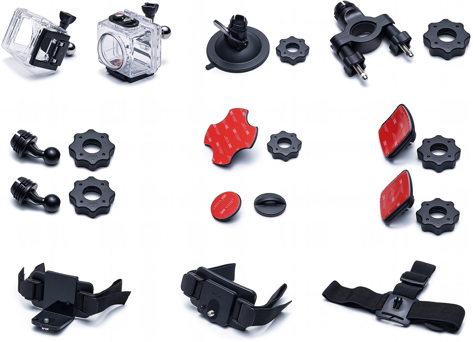 Zum Test lag uns das Extreme Kit vor, das ist das Rundum-Sorglos-Paket zur unverbindlichen Preisempfehlung von knapp 400 Euro, das wirklich alles Zubehör enthält, was es von Kodak für die SP360 gibt. Parallel dazu gibt es ein Aqua Kit und ein Explorer Kit für jeweils 350 Euro mit einem jeweils etwas geringeren Lieferumfang. Im Extreme Kit sind zwei Gehäuse (ein geschlossenes Tauchgehäuse und eine offene Rahmenhalterung mit dabei sowie diverse Befestigungen (Saugnapf, Lenkerhalterung, mehrere Klebebefestigungen für Surfboards und Helme) sowie weitere Halterungen zum Tragen am Körper, auf dem Kopf oder am Helm mit Gurten. Mit dabei sind auch zwei Abdeckungen um das das exponierte Objektiv bei Nichtgebrauch zu schützen, Antibeschlag-Einsätze fürs Gehäuse, zwei Sicherheitsschlaufen und sogar Ersatz-Klebepads und Ersatzmuttern. Wirklich ein Rundum-Sorglos-Paket also.