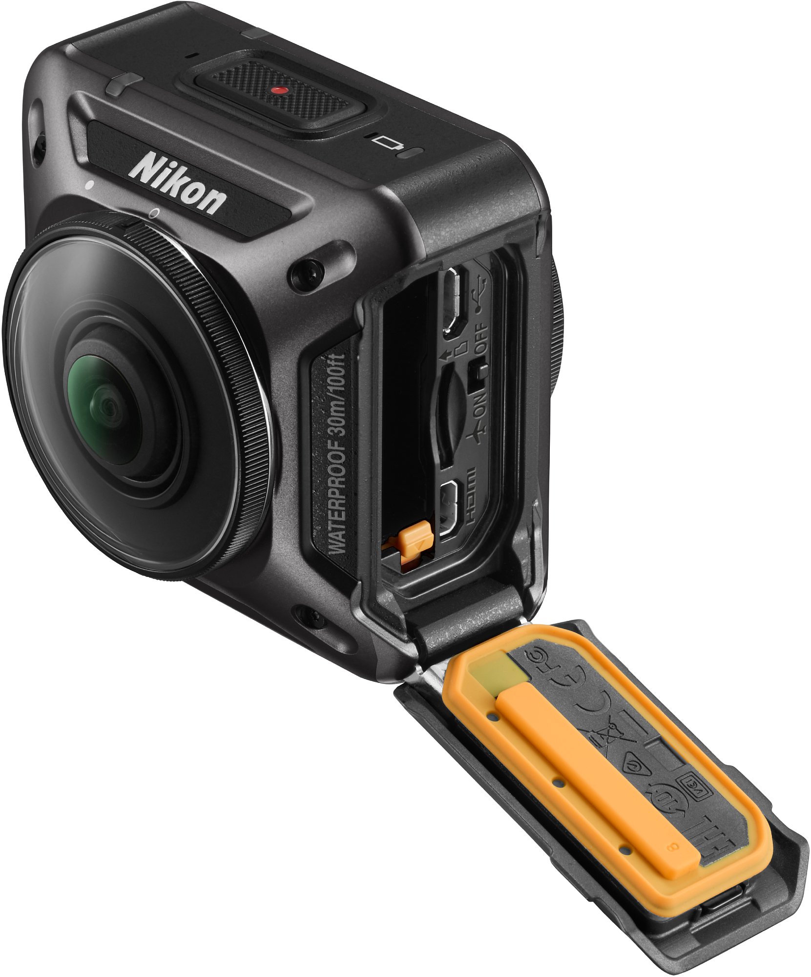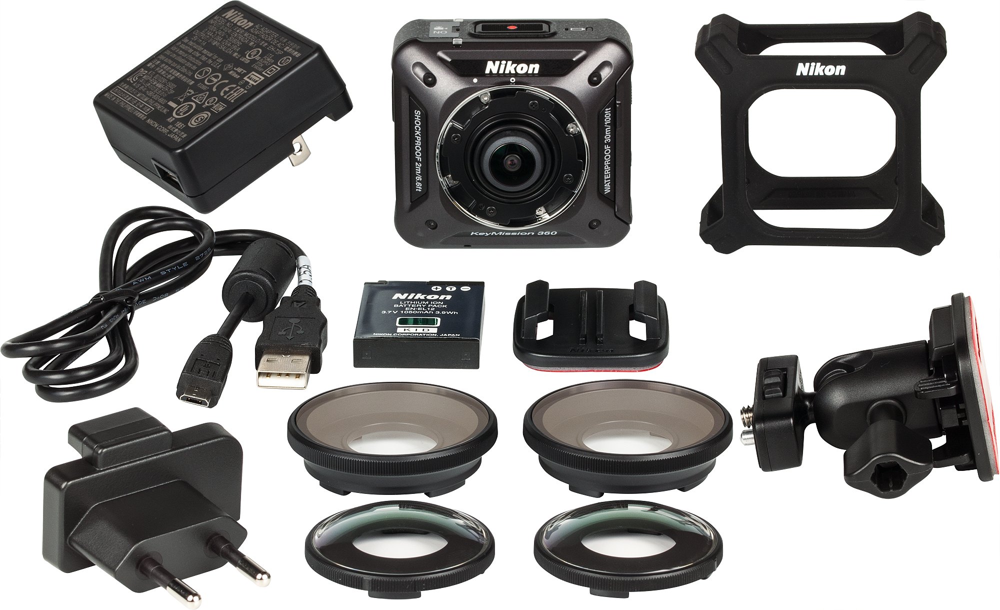 Die Nikon KeyMission 360 verwende den Akku Nikon EN-EL12, der auch in vielen Nikon Coolpix Kompaktkameras zum Einsatz kommt. Der flache 3,7V-Akku-Block hat 1050 mAh Kapazität und ist im Handel ab rund 25 Euro nachzukaufen. Mit dabei ist auch ein Steckerladegerät mit amerikanischem Flachkontakt-Stecker sowie ein Adapter auf Euro-Stecker (natürlich kannst du alternativ jedes andere USB-Ladegerät verwenden), sowie ein USB-Kabel.