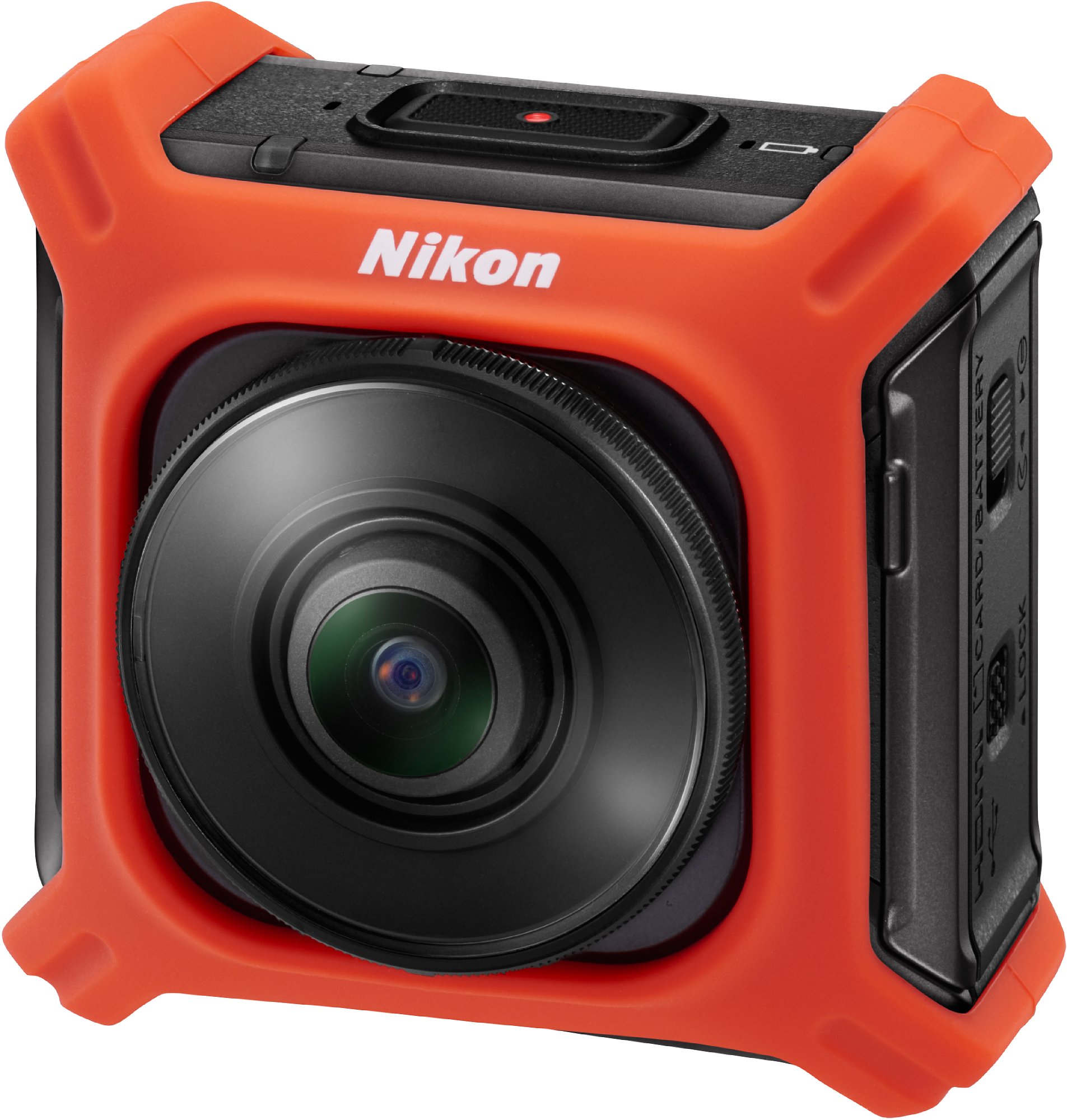 Zum Schutz der Kamera liegt ein schwarzer Silikon-Bumper dabei. Zur Befestigung sind je eine Klebeplatte für gewölbte und plane Oberflächen dabei sowie ein kleiner Kugelkopf aus Kunststoff, mit dem die Kamera waagerecht ausgerichtet werden kann. Der Schnappverschluss, mit dem der Kugelkopf in den Klebeplatten eingerastet wird, sieht auf den ersten Blick wie die Schnellverschlüsse von GoPro aus, aber das täuscht. In eine GoPro-kompatible Platte, die du vielleicht schon auf deinem Helm kleben hast, passt das Nikon-Zubehör nicht.