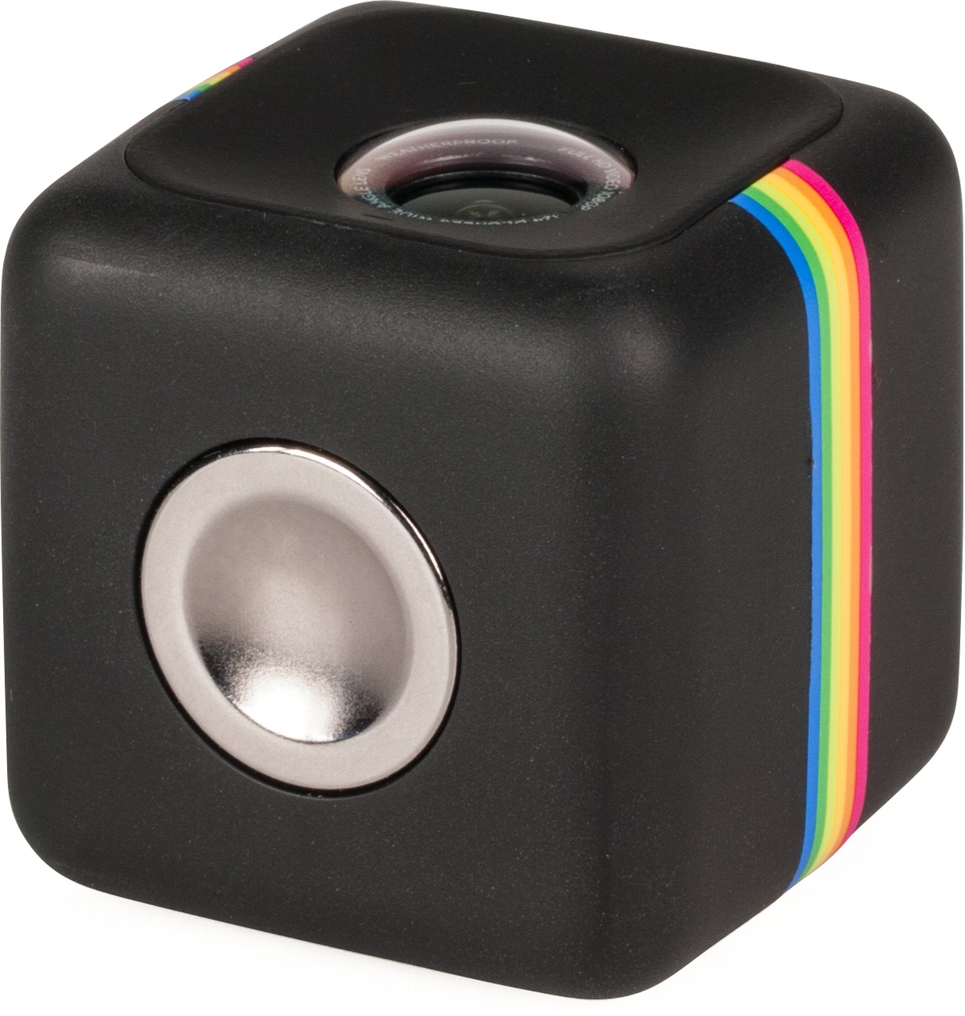 Die durchsichtige, würfelförmige Originalverpackung des Polaroid Cube ist ebenso niedlich und platzsparend wie die Kamera selbst, die du mit 3,5 cm Kantenlänge faktisch überall verstauen kannst. Damit ist der Cube rein haptisch ein großartiger Begleiter für den Alltag. Mit einem relativ starken Magneten auf der Unterseite kannst du die Lifestyle-Kamera auf (möglichst planen) Eisen- und Stahl-Oberflächen anbringen. Wenn sie überkopf hängt, wird das Video intern autmatisch entsprechend gedreht. Die Bedienung ist ebenso einfach, wie Transport und Befestigung – mit einem einzigen großen Kopf auf der Oberseite steuerst du alle verfügbaren Funktionen ganz intuitiv. Ein einzelner Knopfdruck löst mit 1,6 Sekunden Verzögerung ein Foto aus, per Doppelklick startest du eine Videoaufnahme, die du mit einem weiteren Knopfdruck wieder beendest. Langes Drücken bedeutet Einschalten bzw. Ausschalten. Alle Aktionen werden durch unterschiedliche Pieptöne und eine LED unmissverständlich gekennzeichnet.