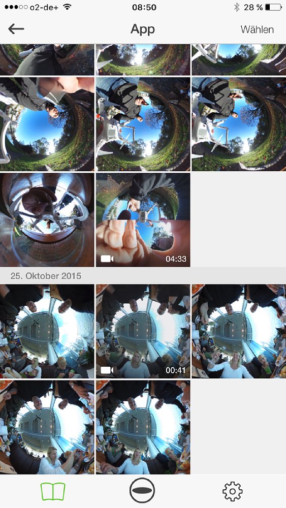 Einen interessanten Unterschied gibt es übrigens derzeit bei den Apps für Android und iOS: Während unter iOS das fertig konvertierte Video auf das iPhone oder iPad übertragen wird (und somit zumindest theoretisch irgendwohin weiterverteilt werden könnte), wird auf das Android-Gerät das Roh-Video mit den beiden kreisrunden Darstellungen übertragen.