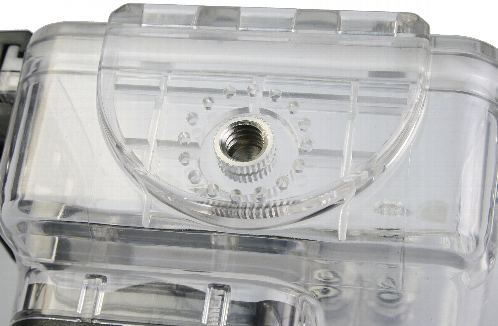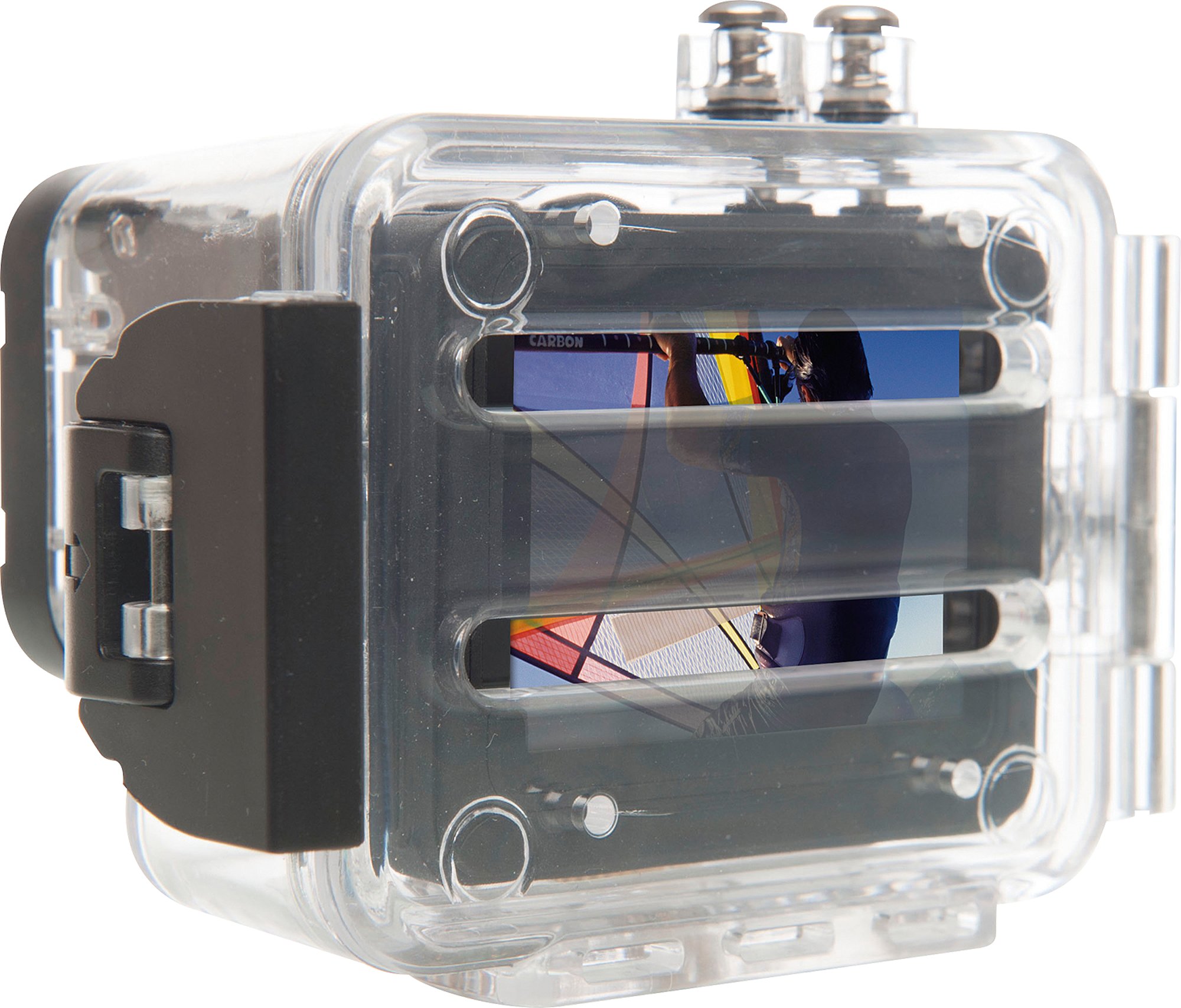 Für den Einsatz unter "normalen" Innen- und Außenbedingungen ist die Kamera auch ohne Schutzgehäuse einsetzbar, dann aber nicht wasserdicht, dem Anschein nach aber auch nicht allzu empfindlich. Soll sie bei Regen oder unter Wasser eingesetzt werden, kann sie in dem mitgelieferten Unterwassergehäuse untergebracht werden. Das ist robust genug, um die betriebsbereit 100 Gramm leichte Kamera auch bei Stürzen aus mehreren Metern Höhe gut zu schützen. Mit dem Gehäuserückdeckel mit Aussparungen ist sie immerhin noch gegen Spritzwasser geschützt und es soll der Ton mehr oder weniger gut ans Mikrofon dringen. Der Ein- und Ausschalter und die Auslösetasten lassen sich nutzen, wenn die Kamera in dem Gehäuse steckt, das Menü kannst dann allerdings nicht aufrufen, weil dem Gehäuse diese beiden Knöpfe fehlen. Praktisch: Sowohl das Unterwassergehäuse als auch die Kamera selbst sind jeweils mit einem Stativgewinde ausgestattet. So kannst du das Gerät in jeder Situation auf einem Standard-Stativ oder anderem Zubehör mit 1/4-Zoll-Fotogewinde anbringen. Auch die Befestigung mit den mitgelieferten Halterungen geht – verglichen mit manchen Mitbewerbern – sehr leicht von der Hand. Auch die Halterungen entsprechen im Bereich der Knebelschraube dem "GoPro-Standard". Dadurch passt die Rollei auf GoPro-Zubehör und umgekehrt bieten Rollei und andere Hersteller einiges optionales Zubehör an, an das dann auch die Rollei S-50 WiFi passt. Mit der Rollei Action-Cam bekommst du übrigens auch einen Download-Link für Corel VideoStudio X6, einer Videobearbeitungssoftware im Wert von ca. 50 Euro.
