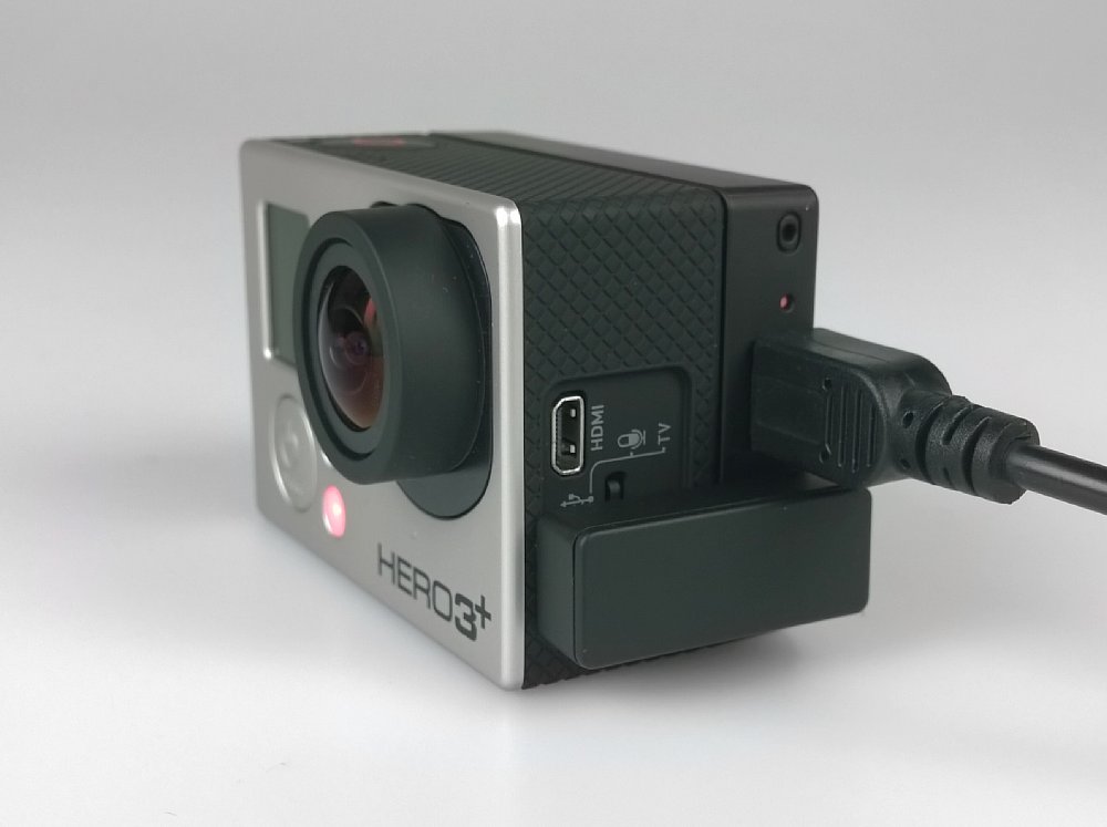 Zum Lieferumfang des Sena GP10-01 gehören neben dem 21 Gramm schweren Bluetooth Pack ein Halterahmen für die Kamera und ein Audio-Anschlussteil. Die Teile lassen sich sehr leicht montieren. Du schiebst einfach das Ende des Bluetooth-Packs in die Öffnung an der rechten Seite des Kameragehäuses drückst das Bluetooth Pack in den Bus-Anschluss der GoPro Hero. Der Bus-Stecker ist aber quasi nur ein Dummy für die mechanische Verbindung und hat selbst keinerlei Kontakte. Die eigentliche elektrische Verbindung zur Kamera erfolgt dann mithilfe des USB-Steckers als Audio-Verbindung. Erst diese externe Steckerbrücke speist den Ton vom Bluetooth-Adapter in die Kamera ein. Schließlich wird der flexible Gehäuserahmen angebracht, der vergleichbar ist mit dem Halterahmen "The Frame" von GoPro (nur eben auf die größere Tiefe und die zusätzliche Kabelbrücke abgestimmt. Der Rahmen hat die üblichen Montagefinger für das Halterungssystem von GoPro und kann damit an Helme, Fahrzeuge oder andere Geräte befestigt werden. Unter der Artikelnummer Sena GP10-02 wird es darüber hinaus ein Set mit Unterwassergehäuse geben.
