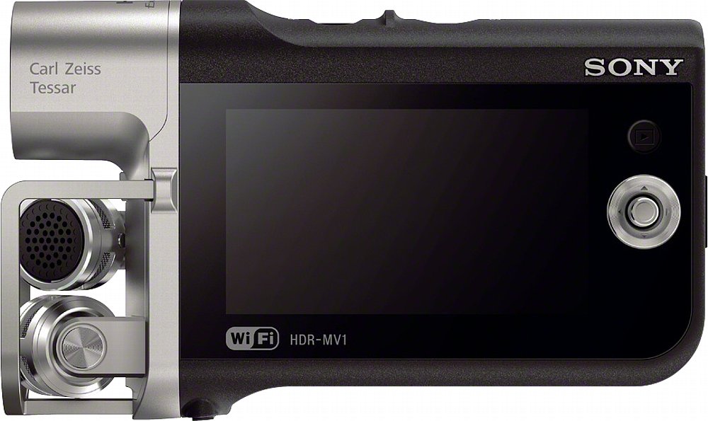 Die Video-Aufzeichnungsausstattung ist dagegen rudimentär. Eine Festbrennweite mit 120 Grad "Carl Zeiss Tessar" Objektiv (also kein Zoom). Der Sensor soll laut Sony 16,8 Megapixel Auflösung haben, nur die Hälfte davon (8,4 Megapixel) soll effektiv für die Videoaufzeichnung verwendet werden. Wahrscheinlich ist also ein 4:3-Format-Sensor verbaut. Beim Beschneiden auf 16:9-Videoformat geht dann sehr viel verloren. Trotzdem sind 8,4 Megapixel immer noch eine sehr gute Ausgangsbasis für FullHD-Videos, die rund 2 Megapixel Bildgröße haben. Ein Digitalzoom (Ausschnittsvergrößerung) bietet der Sony HDR-MV1 nicht und übrigens auch keinerlei Foto-Funktion. Lediglich die Videoqualität lässt sich zwischen FullHD (1080p) und HD (720p) umschalten. Die Bildrate beträgt jeweils immer 30 Vollbilder pro Sekunde. Wenn man gar kein Video möchte, kann man den Ton auch ohne Video aufnehmen.